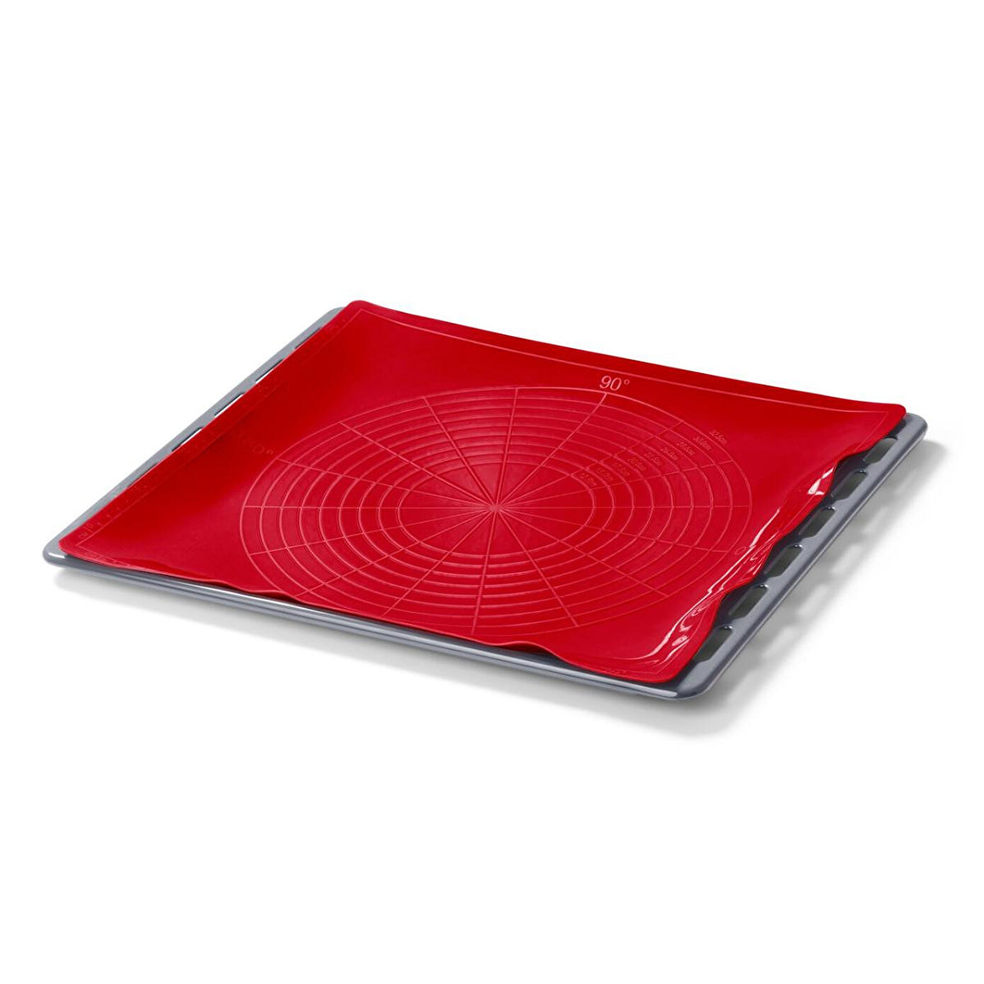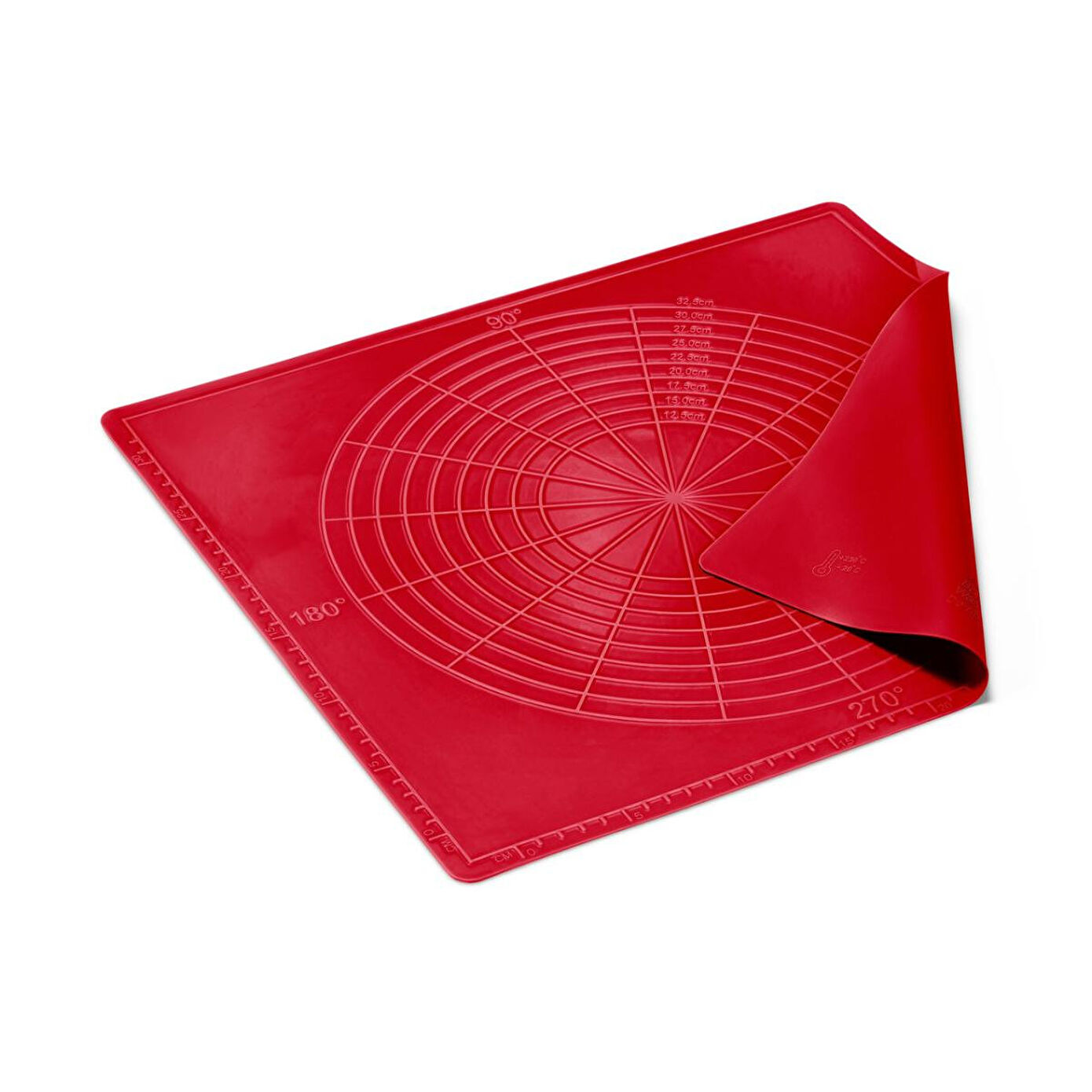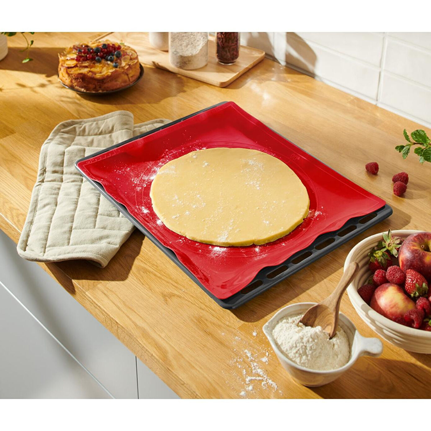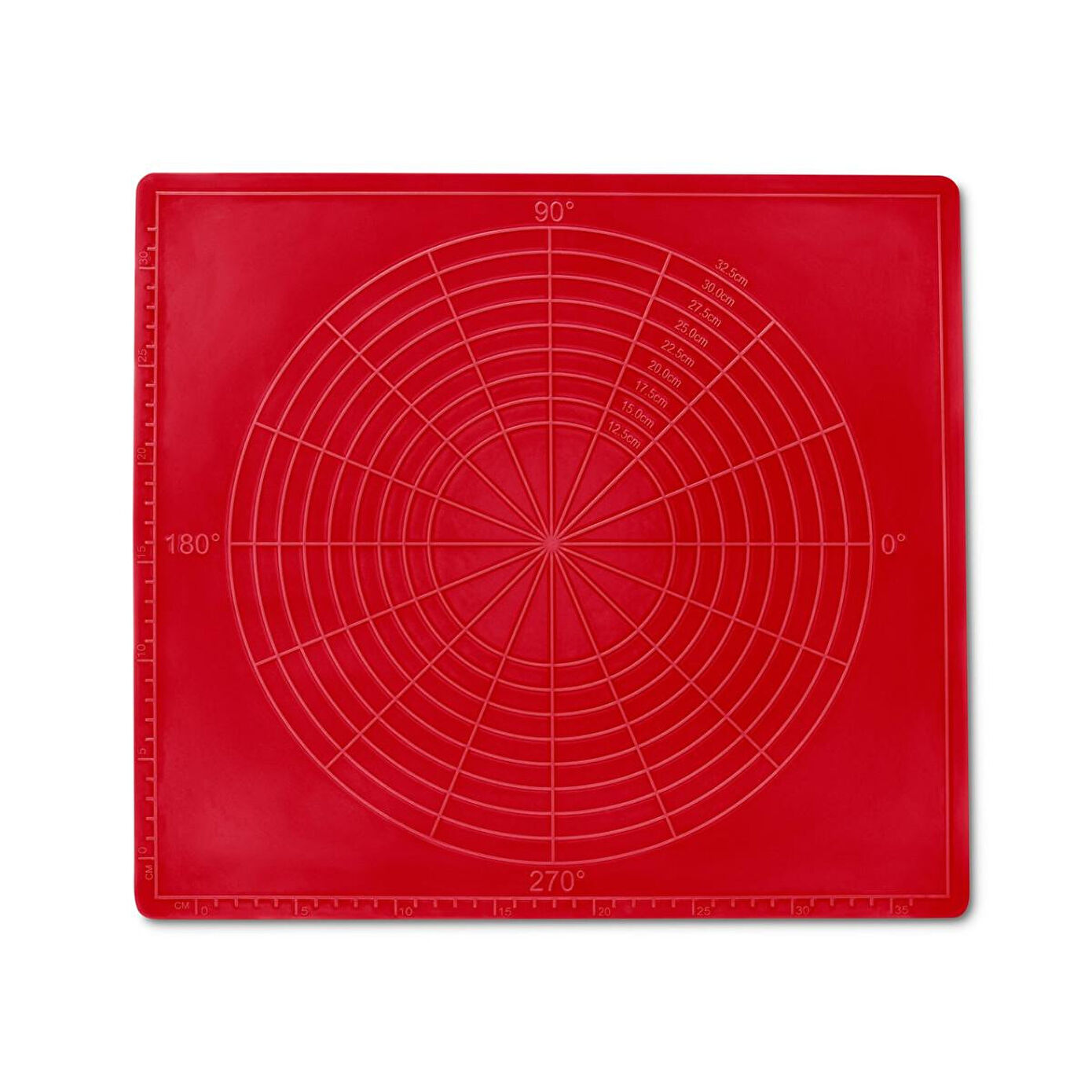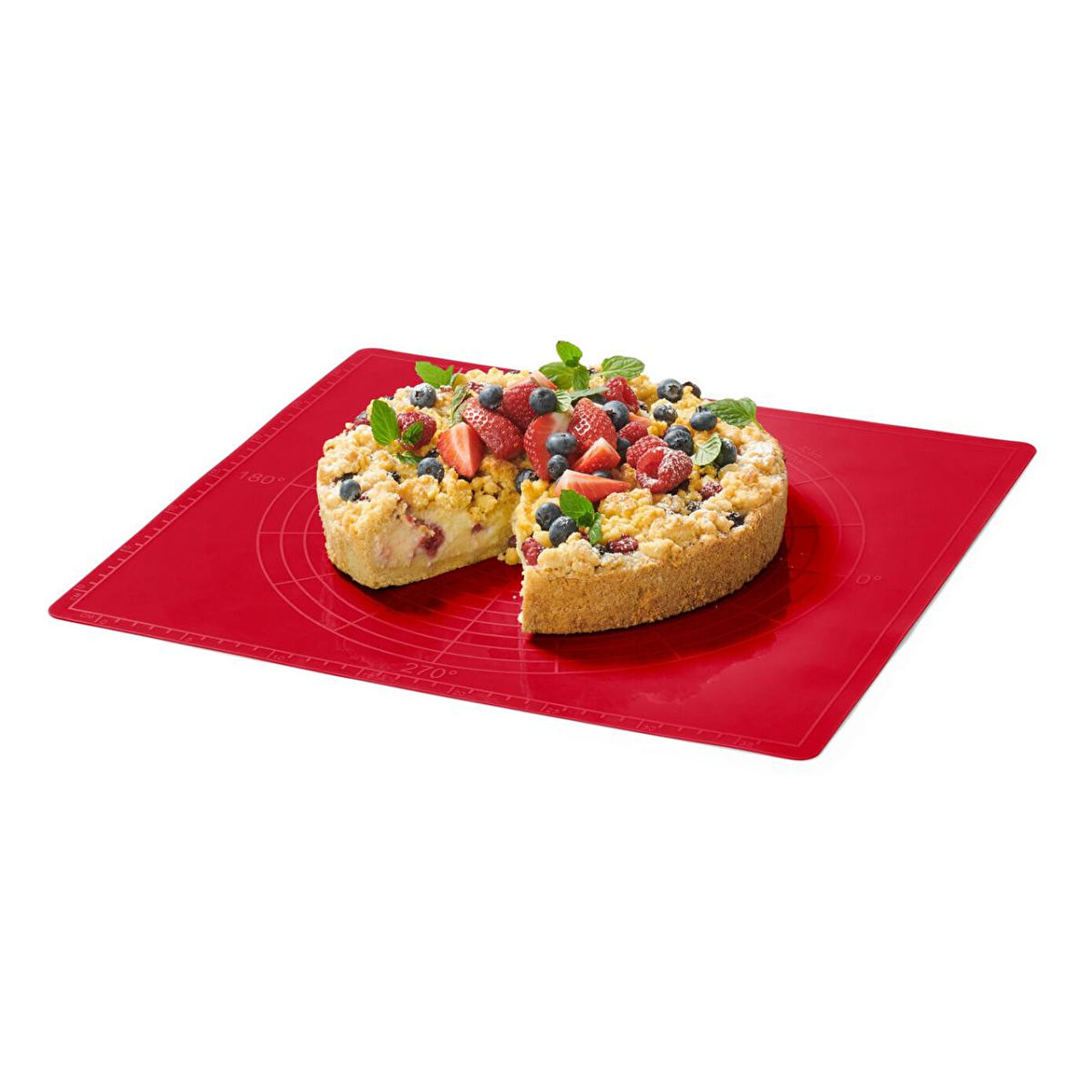 Pişirme kağıdı yerine ve çalışma yüzeyi olarak Silikon malzemeden üretilmiştir - yapışmaz ve kaymaz Çalışma yüzeyi olarak idealdir - cm ölçeği, Ø ve pasta dilimi kabartmasıyla İstenilen boyuta kesilebilir - ayrıca yaylı kalıpların kaplanması için de uygundur Yer tasarrufu sağlayan saklama için silikon halka dahil Bulaşık makinesinde yıkanabilir Bu kalıcı pişirme matı israfı azaltır. Zararlı madde kontrolü yapılmıştır – harici, akredite kuruluşlar tarafından İçerik Renk Kırmızı Malzeme %100 Silikon Ölçüler Yaklaşık 42 x 38 cm, malzeme kalınlığı yaklaşık 1 mm Tek tek kesilebilen çaplar: 12,5 cm / 15 cm / 17,5 cm / 20 cm / 22,5 cm / 25 cm / 27,5 cm / 30 cm / 32,5 cm Ağırlık Yaklaşık 190 gr İçerik Yer tasarrufu sağlayan saklama için silikon halka dahil Uyarılar Dikkat! Fırın tabanına koymayın!