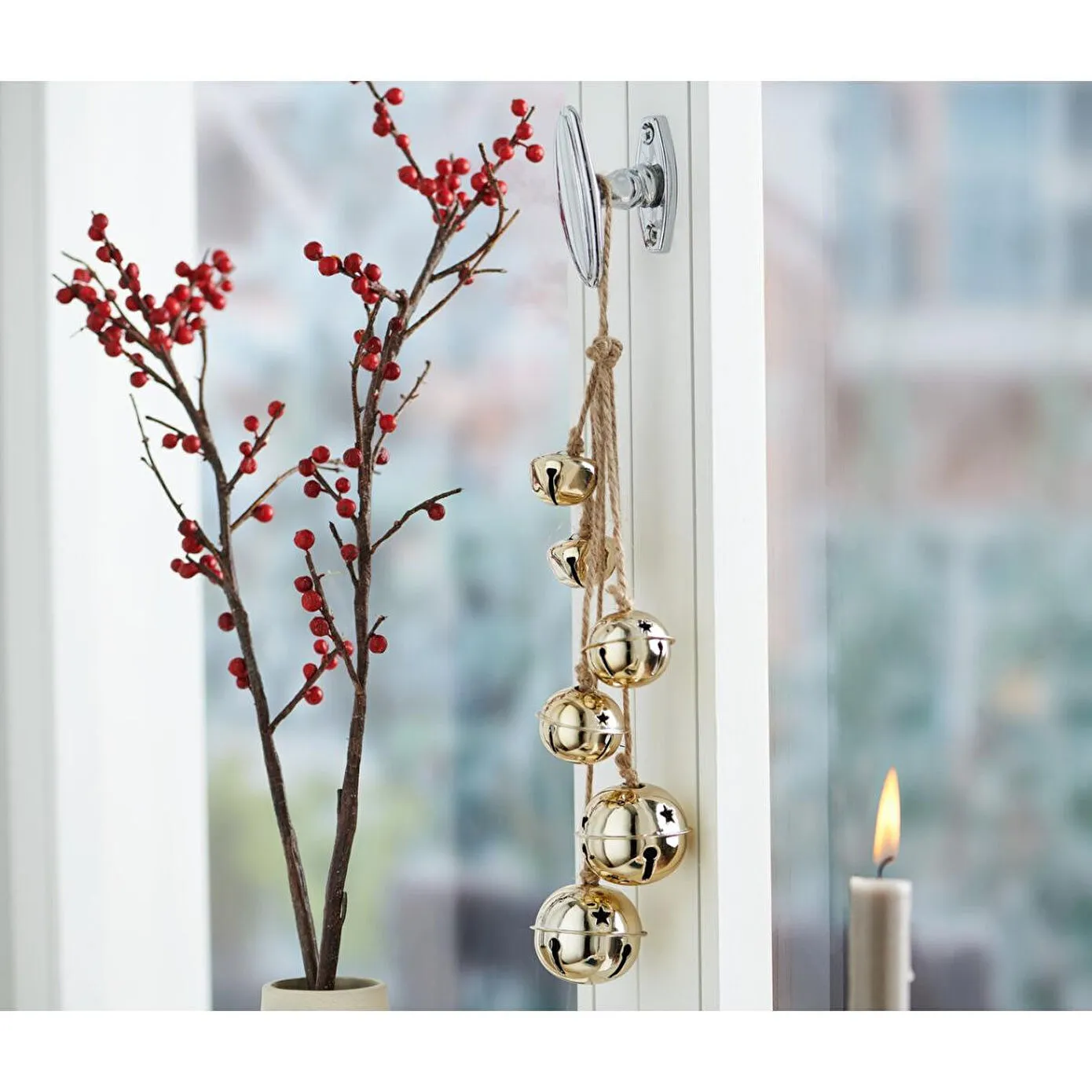 Çanlı Dekoratif Askı Renk: Altın renkli çanlarKordon doğal jüt rengi Malzeme: Çanlar demir, galvanizliKordon doğal jüt Ölçüler: Ø çanlar 2x her biri yakl. 3 cm, 2x her biri yakl. 4 cm, 2x her biri yakl. 5 cmKordon uzunluğu yakl. 31 cm Kullanım Uyarıları: Dekoratif üründür! Bu ürün oyuncak değildir! Parlak çanlar|Pencereler, merdivenler veya kapı önleri için çok yönlü ideal dekorasyon|Yıldızlı deliklere sahip 3 farklı boyutta çanlar|Jüt kordon ile şölen ruhunda rustik cazibe