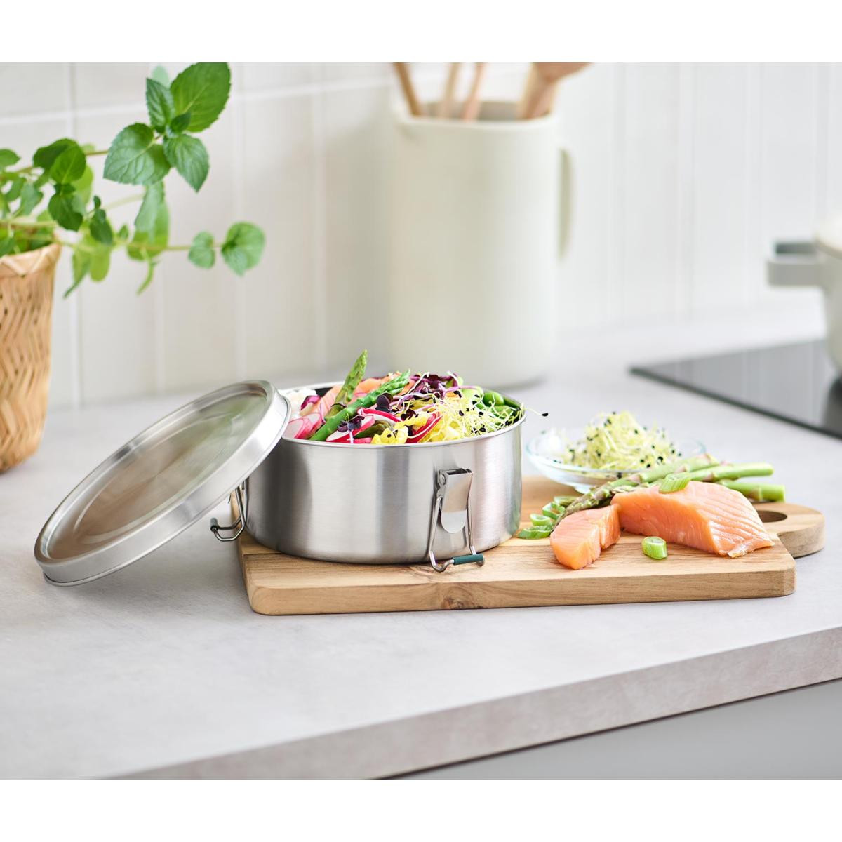 Paslanmaz Çelik Sefer Tası Renk: Paslanmaz çelik rengiSilikon tel stoperleri siyah Malzeme: 18/10 paslanmaz çelikTel stoperleri %100 silikon Ölçüler: Kapağın çapı yakl.; 16 cm, yüksekliği yakl.; 8 cmKapak hariç çapı yakl.; 15,5 cmEk parça yüksekliği yakl.; 2,5 cm Dolum kapasitesi: Yakl.; 1,1 l Yolculuk için idealdir|Güvenli şekilde kapatmak için kıskaç telli kapama sistemi|Silikon contalı kapak|Salata, makarna ve bowl yemekleri için ideal büyüklük|Plastik ve alüminyuma çevre dostu alternatif|Dayanıklı, uzun ömürlü paslanmaz çelikten|Bu paslanmaz çelik sefer tası atıkları azaltır.
