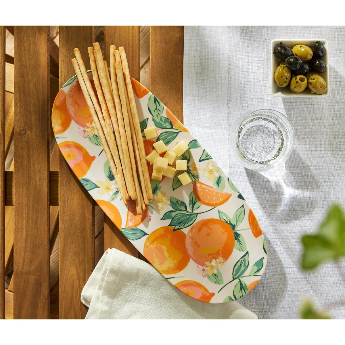 Servis Kasesi Renk: Çok renkli portakal dekoru Malzeme: %100 melamin Ölçüler: U x G x Y yakl. 38 x 16 x 2 cm Ağırlık: Yakl. 278 g Kullanım Uyarıları: Bulaşık makinesinde 50 °C'ye kadar yıkanabilir Kırılmaya dayanıklı melaminden|Kaliteli portakal dekorlu|Parlak görünüm