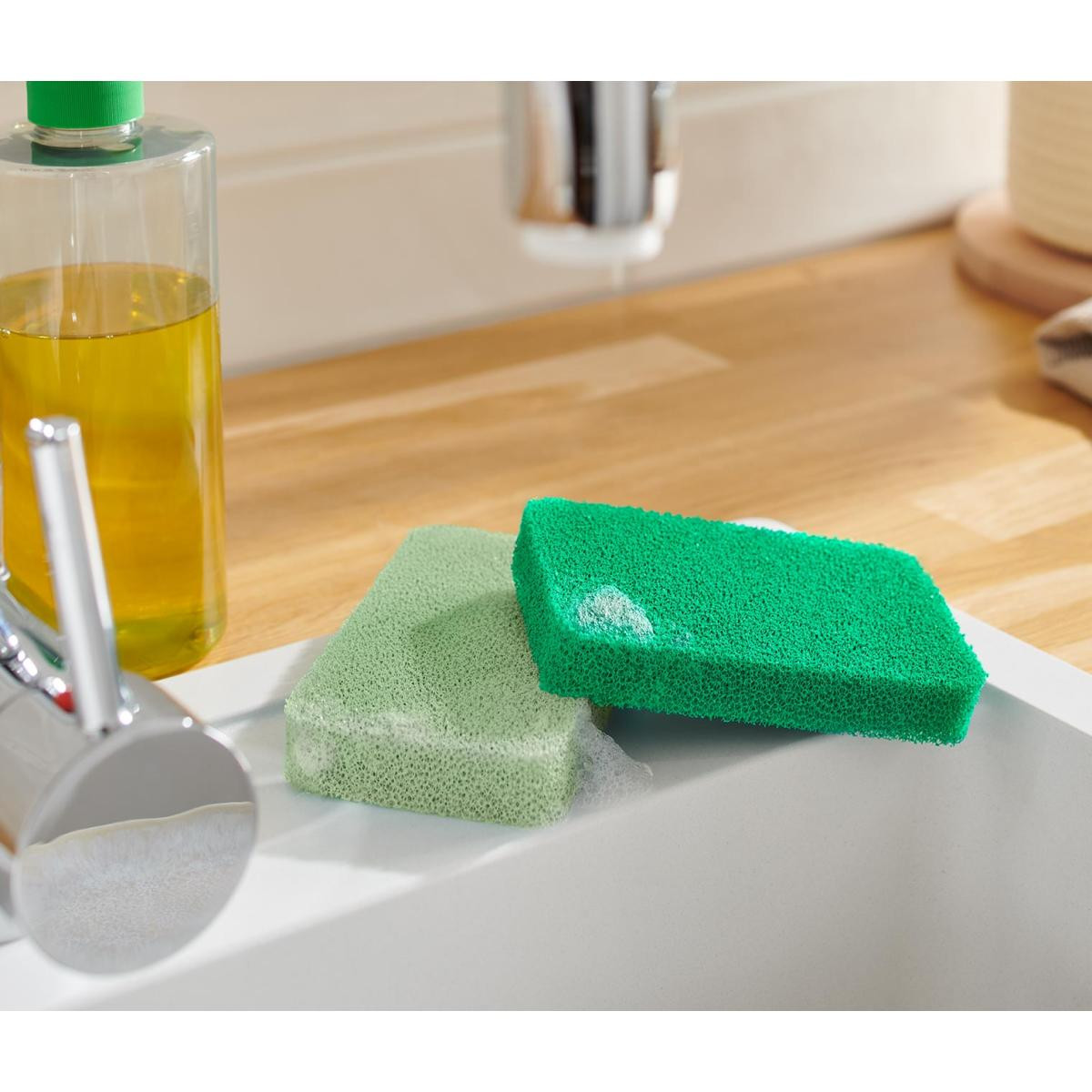 2 Adet Silikon Sünger Renk: 1 adet açık yeşil, 1 adet koyu yeşil Malzeme: %80 silikon, %20 poliüretan, süngerleştirilmiş Ölçüler: G x Y x D her biri yaklaşık 11,5 x 2 x 7 cm Ağırlık: Her biri yakl.; 23 g Kullanım Uyarıları: Bulaşık makinesinde 60 °C'ye kadar yıkanabilir Uyarılar: Gıdalarla temas için uygun değildir Mutfak, banyo ve bahçelerde temizlik için ideal|Hijyenik – küflenmez, kokmaz|Bulaşık makinesinde yıkanabilir |Seramik cam, fayans, cam ve ahşap için uygun|Hızlı kurur|Çizik bırakmaz