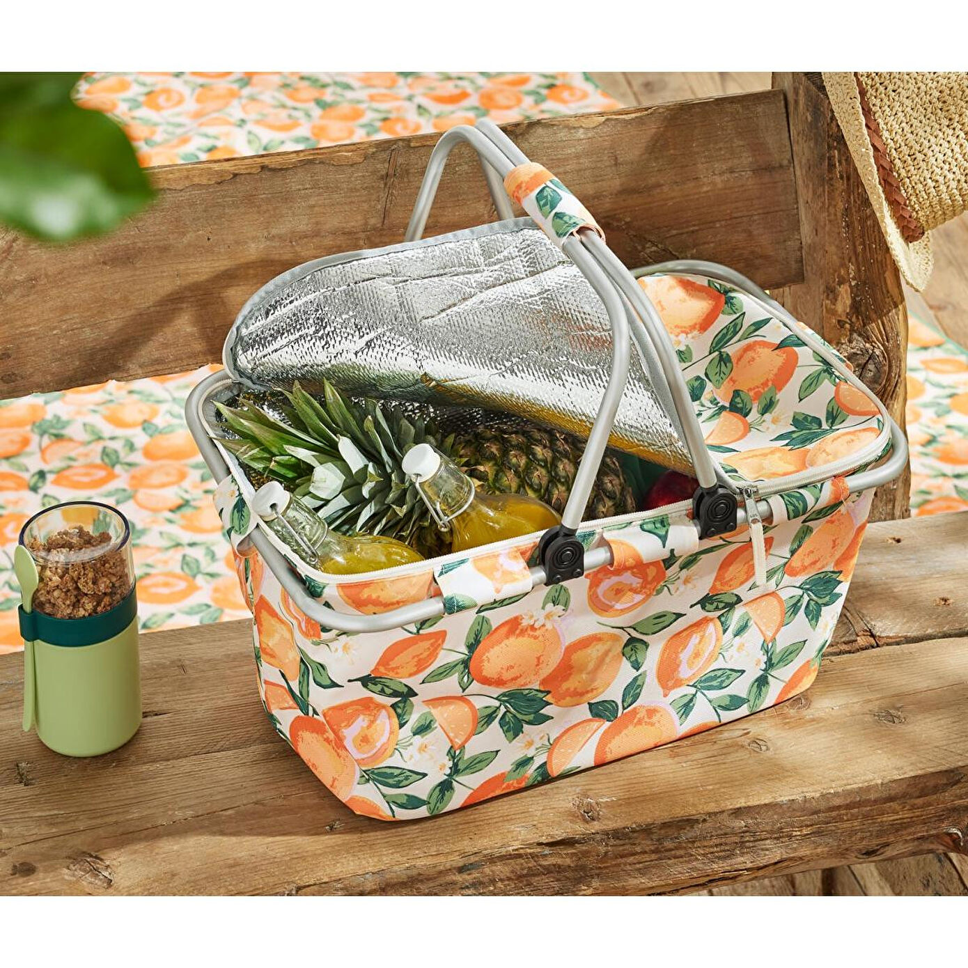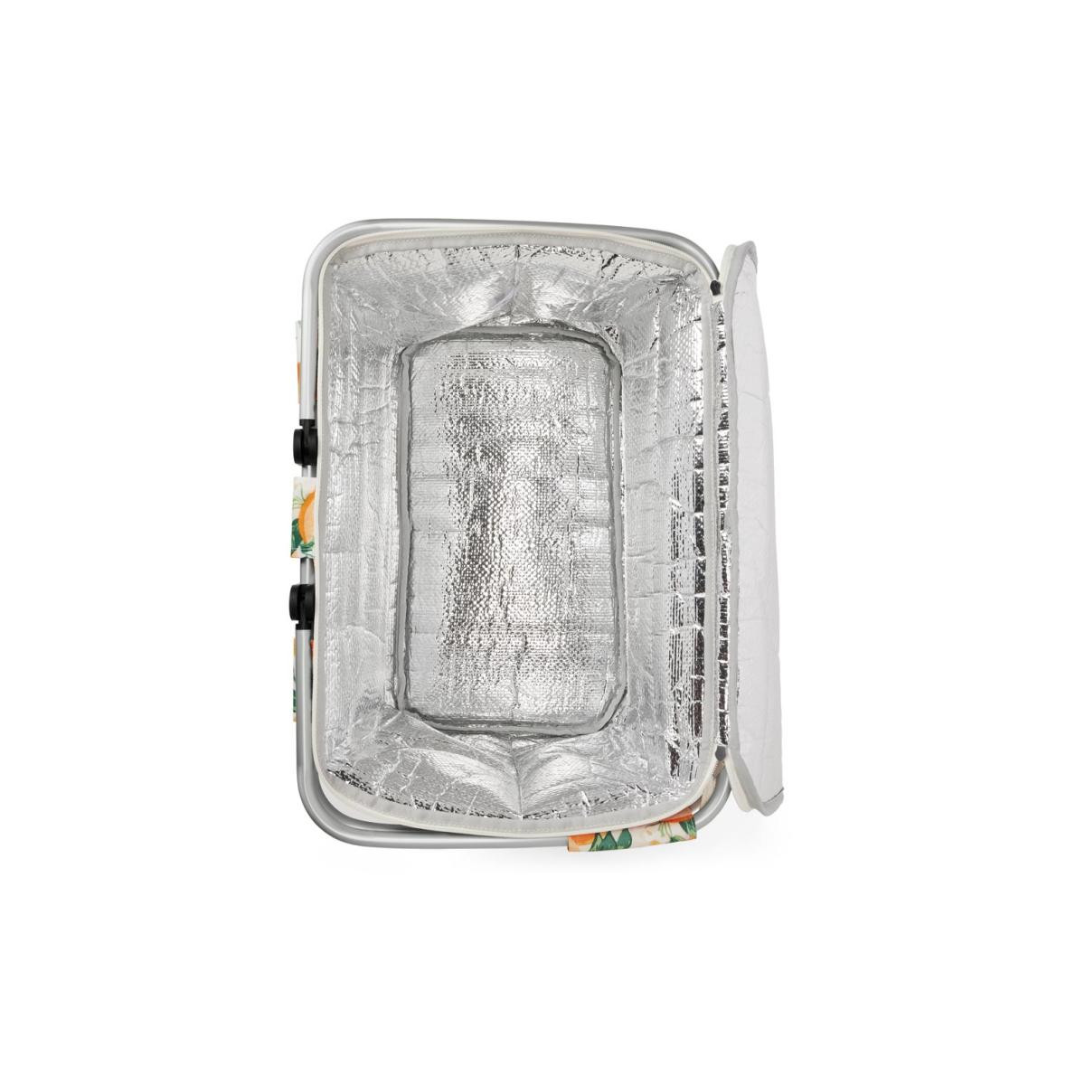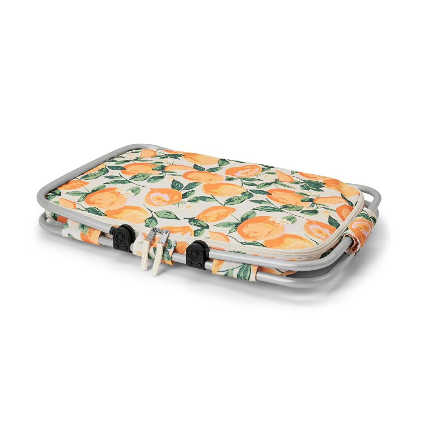 Soğutucu Sepet Renk: Çok renkli portakal baskılı Malzeme: Dış kaplama %100 polyesterAstar polietilen, polietilen tereftalatKaplama %100 poliüretanÇerçeve ve kulp alüminyumMenteşeler ve ayaklar plastik Ölçüler: G x Y x D yakl. 40 x 26 x 22 cm Dolum kapasitesi: Yakl. 28 l Kullanım Uyarıları: Ambalajı açtıktan sonra soğutucu çantanın havalanmasını bekleyinGerekirse, soğutucu çantanın içini ılık su ve biraz bulaşık deterjanı ile silinAşındırıcı ürünler kullanmayın ve soğutucu çantayı suya daldırmayınSoğutucu çantayı kullanmadığınız zamanlarda açık bırakın. Aksi halde soğutucu çanta sıkı şekilde kapatıldığında küf oluşabilir.Yiyecekleri soğutucu çantada sadece bir paketin içerisinde muhafaza edin İzolasyonlu iç kısmı gıdaları daha uzun süre taze tutar|Çift yönlü fermuarlı kapak|Kullanılmadığında yer kaplamadan katlanabilir|Dayanıklıdır ve nemli bezle silinebilir|Gıdaları, buz aküsü olmadan yakl. 4 saat taze tutar|Kapasitesi yakl. 28 l