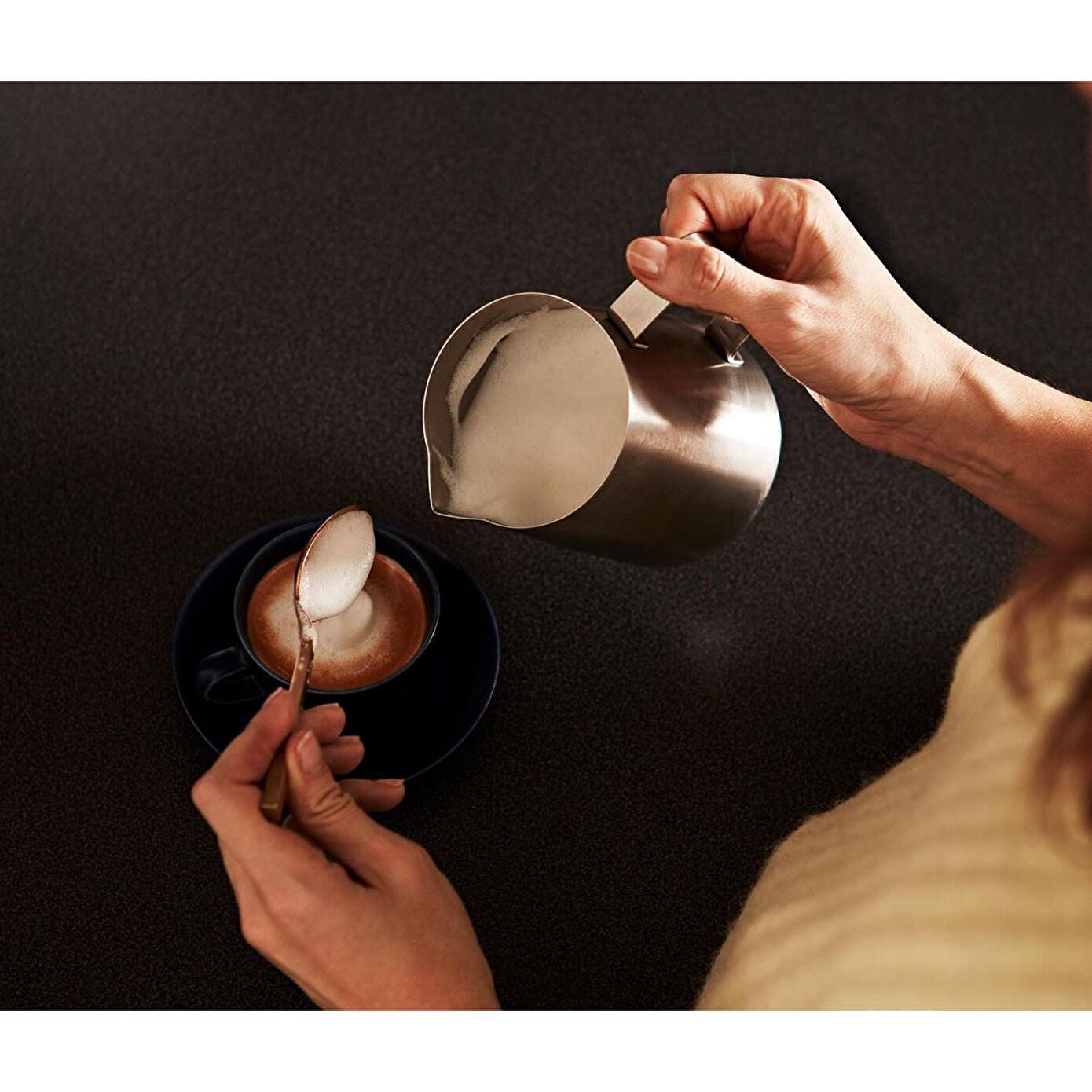 Sütlük, Gümüş Malzeme: 18/10 paslanmaz çelik Sütün mükemmel şekilde köpürtülmesi için soğanlı şekil|Hassas dökme için konik dökme ağzı ile: süt köpüğü süslemeleri için ideal|100'den 550 ml'ye kadar 50 ml'lik artışlarla dahili ölçek|18/10 paslanmaz çelikten yapılmıştır|Gönderilen üründe Tchibo logosu bulunmamaktadır.
