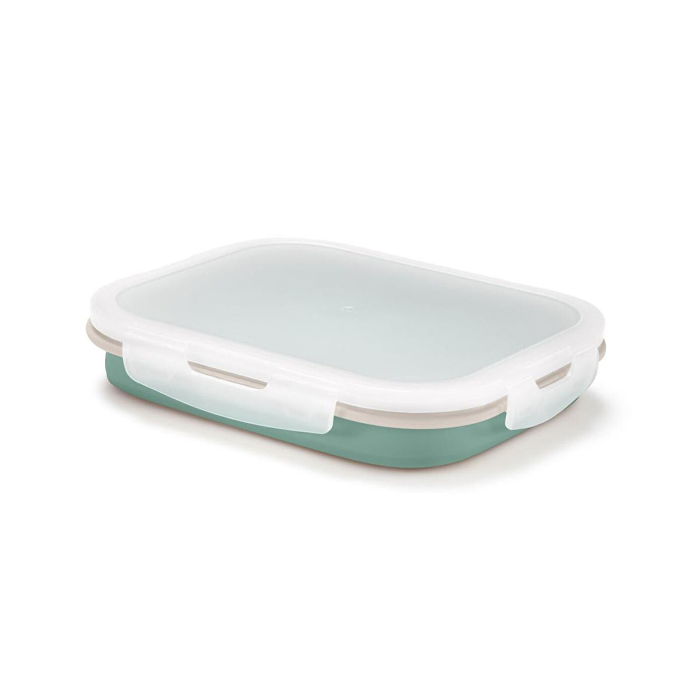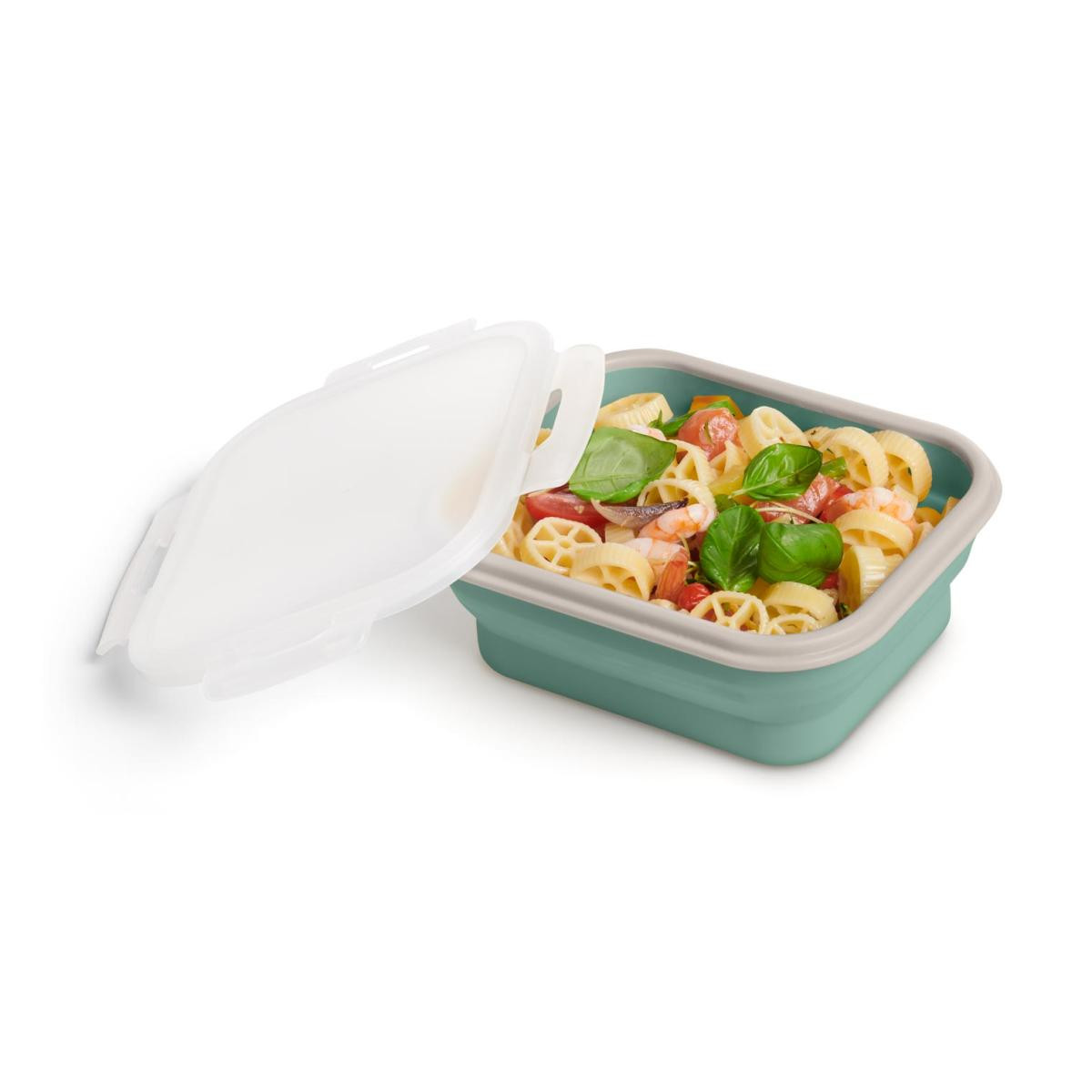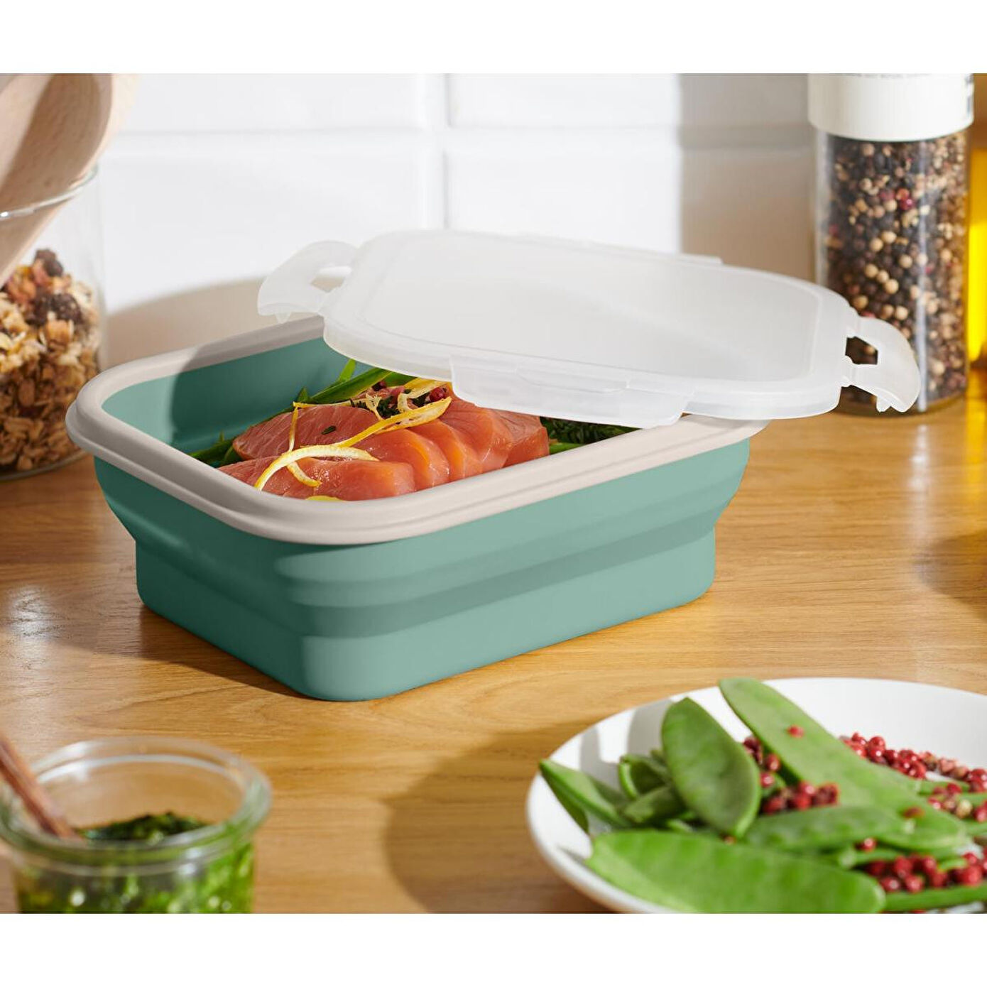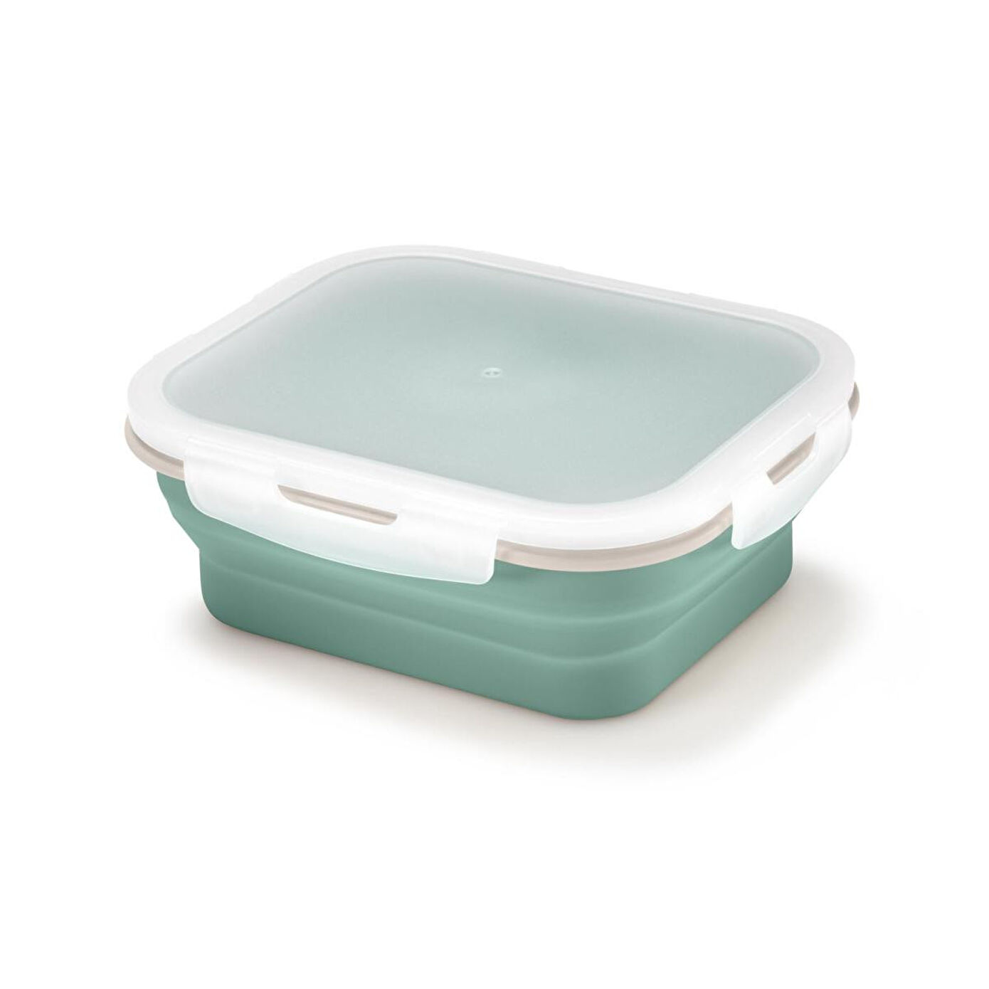 Saklama Kabı, katlanabilir Renk: Yeşil. ; Kapak buzlu şeffaf Malzeme: Kap %100 silikonKapak %100 polipropilen Ölçüler: G x Y x D yakl. ; 18 x 7 x 15,5 cmKatlanmış halde yükseklik yakl. ; 3,5 cm İçerik/Aksesuar: Kullanma kılavuzu dahildir Ağırlık: Yakl. ; 220 g Saklamak, ısıtmak, dondurmak ve çözdürmek için|İnce katlanabilir ve yer kaplamadan saklanabilir|Silikon contalı ve klips kilitli kapak – sızdırmaz ve dışarısı için ideal|BPA içermez;