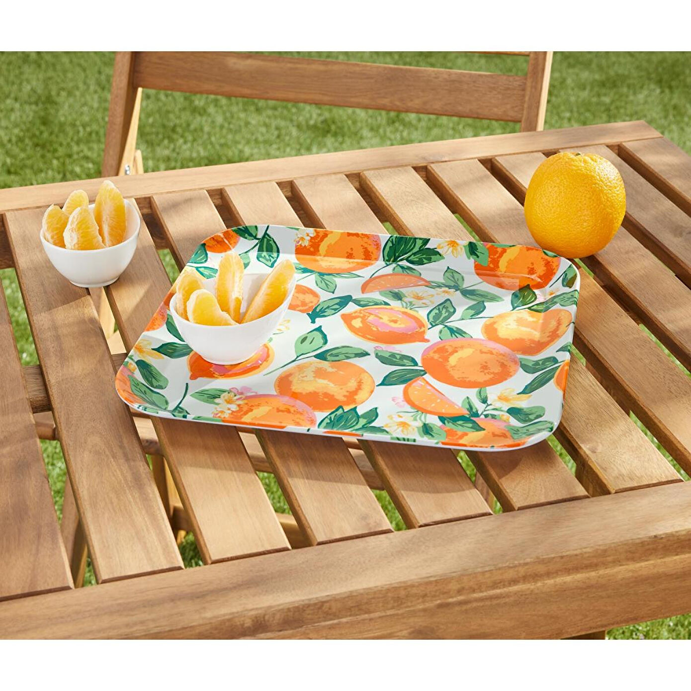 Servis Tepsisi Renk: Çok renkli portakal dekoru Malzeme: %100 melamin Ölçüler: Yakl. 30 x 30 cmYüksekliği yakl. 2 cm Ağırlık: Yakl. 375 g Kırılmaya dayanıklı melaminden|Kaliteli portakal dekorlu|Parlak görünüm