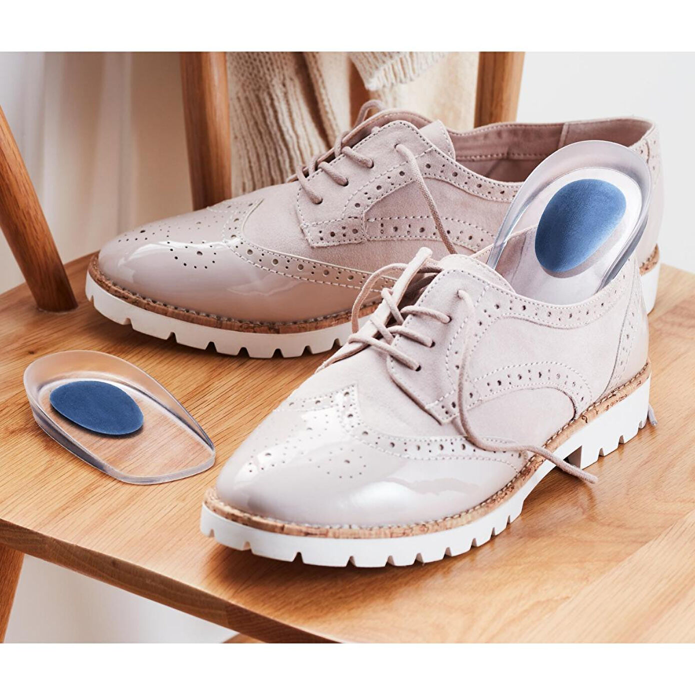 1 Çift Topuk Desteği Renk: İç kısmı mavi şeffaf Malzeme: %100 poliüretan Ölçüler: Her biri yakl.; 10,5 x 6,5 cmKalınlık yakl.; 2,5–8 mm38–42 ayak numaraları için (Avrupa ölçüleri) Ağırlık: Her biri yakl.; 29 g Kullanım Uyarıları: Sabunla elde yıkanabilir Uyarılar: Tıbbi ürün değildir Rahat, konforlu yürümek ve koşmak için ergonomik şekillendirilmiş|Tek numara: 38–42|Tampon etkili – eklemleri rahatlatabilir|Yumuşak, kendinden yapışkanlı jel yastıklar sayesinde mükemmel tutuş|Tekrar kullanılabilir