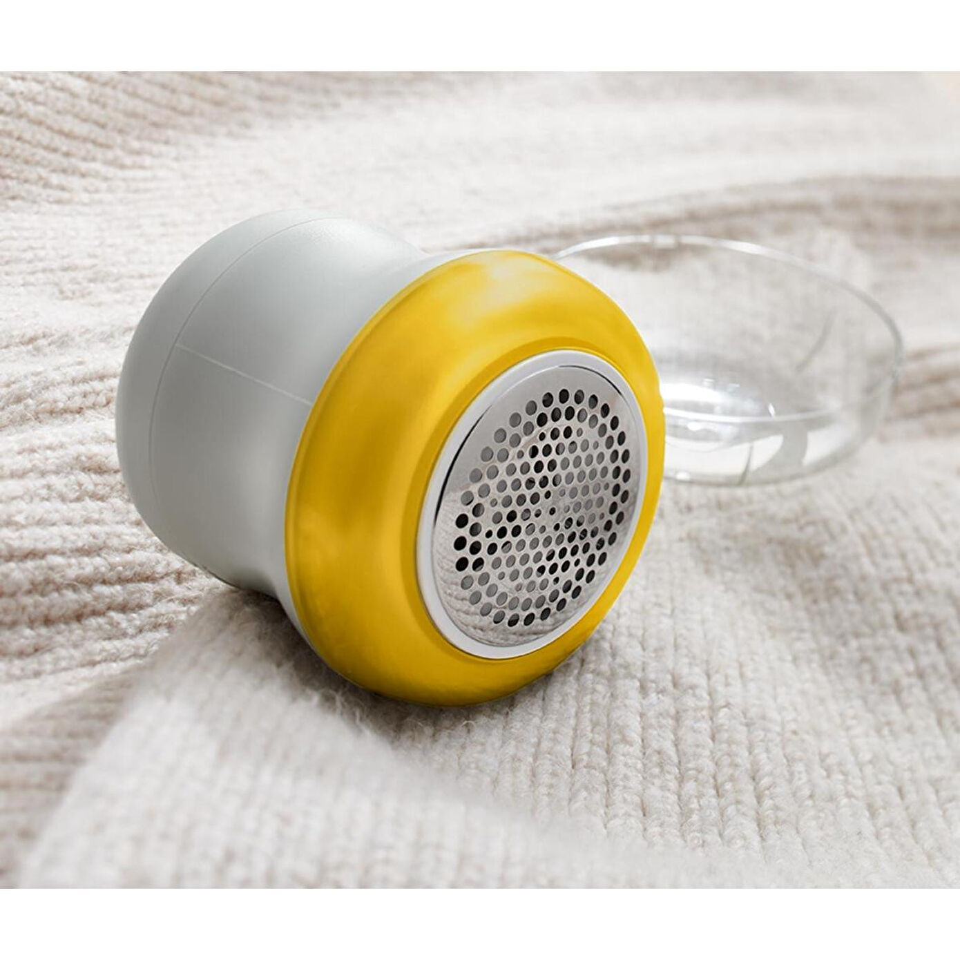 Tüy Temizleme Cihazı Renk: Gri-sarı Malzeme: Gövde %100 ABS plastikMakas ve bıçaklar metal Ölçüler: Yüksekliği yakl.; 9,5 cmÇapı yakl.; 8,5 cmKesme başının çapı yakl.; 5 cm İçerik/Aksesuar: Temizleme fırçası, koruyucu kapak, 2 adet LR06 (AA) pil ve kullanma kılavuzu dahildir Ağırlık: Yakl.; 200 g Güç: 3 V Pil/Akü Çalışma Süresi: 1 set pille çalışma süresi yakl.; 90 dakika Teknik Detaylar: Hız: 4.000–8.600 devir/dk.; Pil: 1,5 V, 2.200 mAh, 3 Wh Ekstra büyük kesme yüzeyi: Örme ürünlerin tüylerini ve topaklarını derinlemesine, zarar vermeden ve eşit şekilde temizler|Ergonomik şekillendirilmiş|2 hız kademesi|Çıkarılabilir tüy haznesi|Çalışma süresi yakl.; 90 dakika |Koruma kapaklı ve temizleme fırçalı