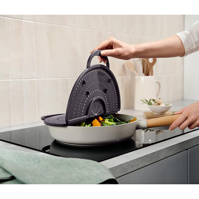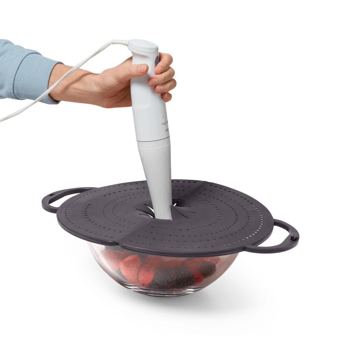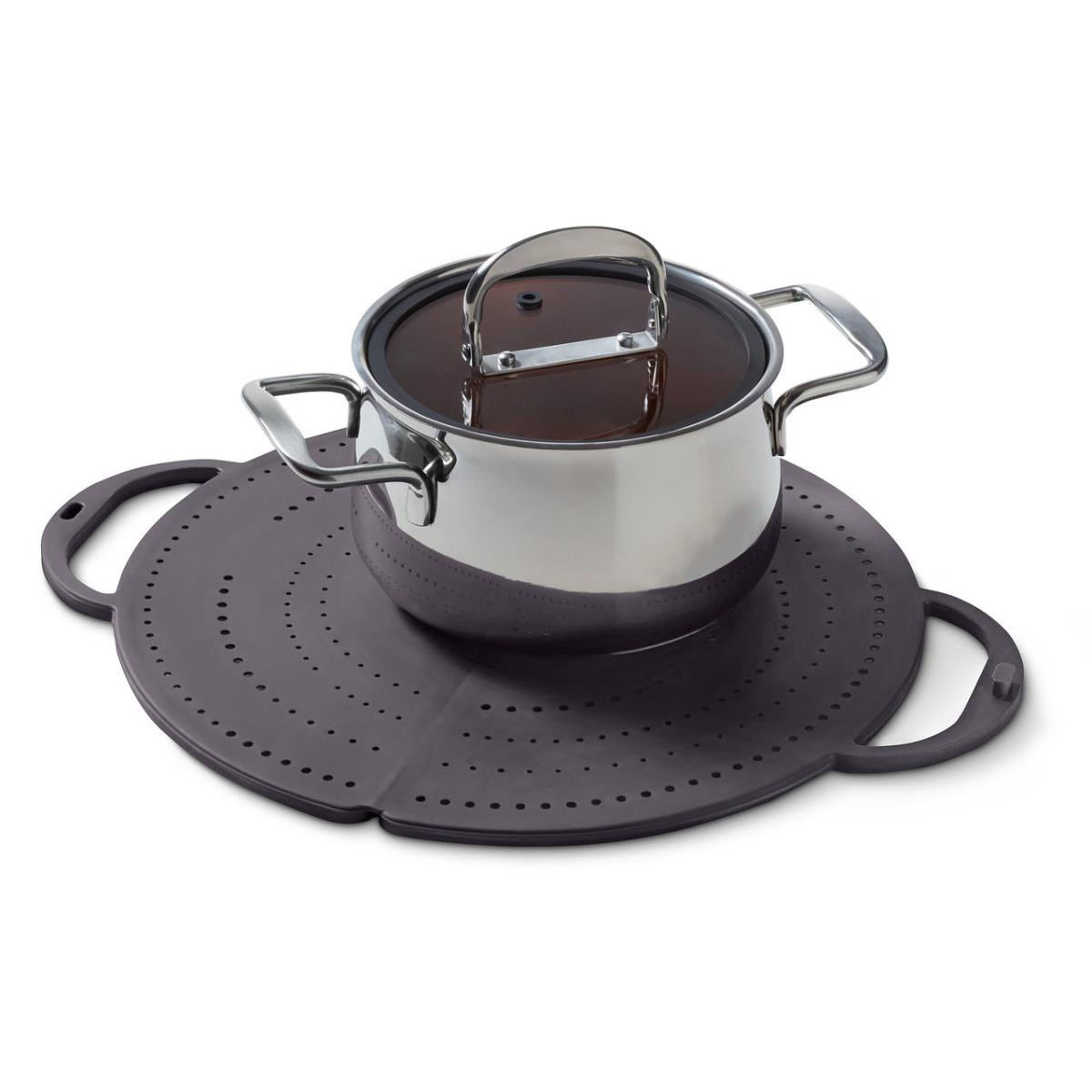 4'ü 1 arada: Yağ sıçramasına karşı koruyucu, pişirme altlığı, tencere altlığı ve temiz şekilde püre yapmak ve karıştırmak için koruyucu Katlanabilir – yer kaplamadan saklamak ve tavanın içini görebilmek için El mikseriyle kullanım için oluklu orta açıklık Yakl. 20, 24 veya 28 cm çapında tavalar ve tencereler için uygundur 2 kulplu Pizza, kurabiyeler vb. için pişirme altlığı olarak da ideal Buharın çıkabilmesi için delikli – çıtır çıtır kızartmalar için Zararlı madde kontrolü yapılmıştır – harici, akredite kuruluşlar tarafından İçerik Renk Antrasit Malzeme Silikon ve paslanmaz çelik Ölçüler Çapı yakl. 33 cm Kulplar dahil genişliği yakl. 42 cm Ağırlık Yakl. 417 g Kullanım Uyarıları –20 °C ile +230 °C arası sıcaklığa dayanıklıdır Uyarılar Dikkat! Matı fırın tabanına koymayın