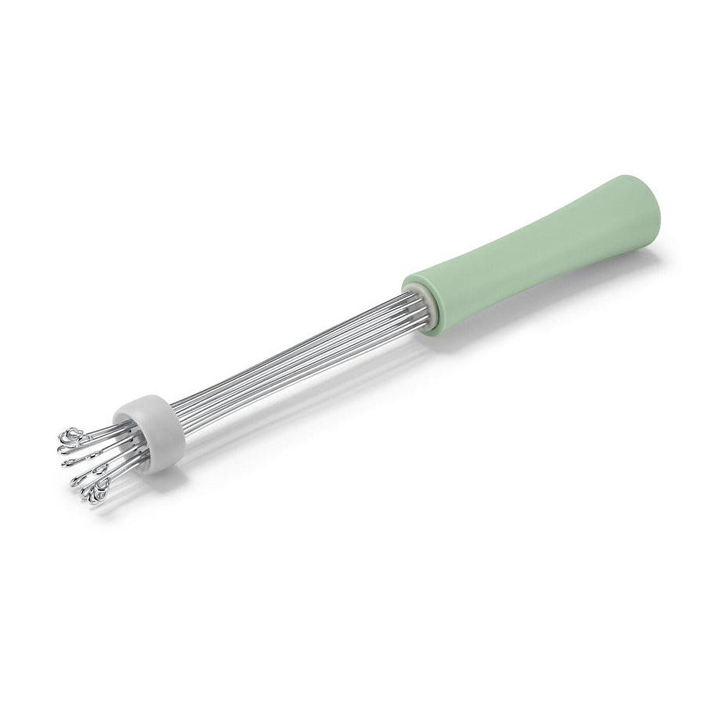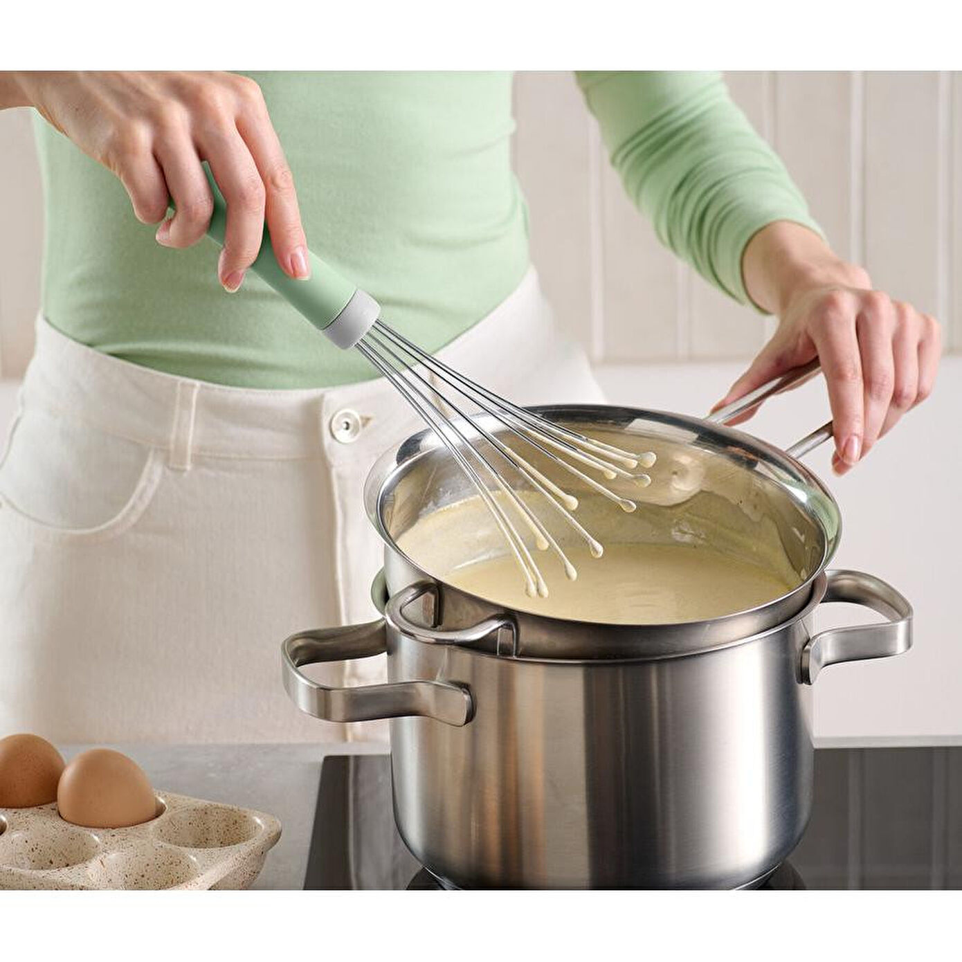 Telleri toplamak için sıkıştırma halkalı Kap kenarına kadar etkili çırpma Açık uçlu ve esnek teller sayesinde temizlemesi kolay Teller yüksek kaliteli paslanmaz çeliktendir Sıcak ve soğuk yiyecekler için uygundur Zararlı madde kontrolü yapılmıştır – harici, akredite kuruluşlar tarafından Renk Teller paslanmaz çelik rengi Sap açık yeşil Malzeme Teller paslanmaz çelik Sap polipropilen ve termoplastik elastomer Ölçüler Uzunluğu yakl. 28,5 cm Tellerin uzunluğu yakl. 15 cm Sap çapı yakl. 3 cm