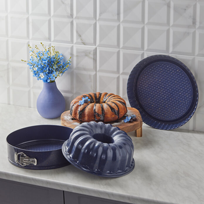 Teemo 3'lü Lacivert Tart Yuvarlak Ve Kelepçeli Kek Kalıbı Seti
