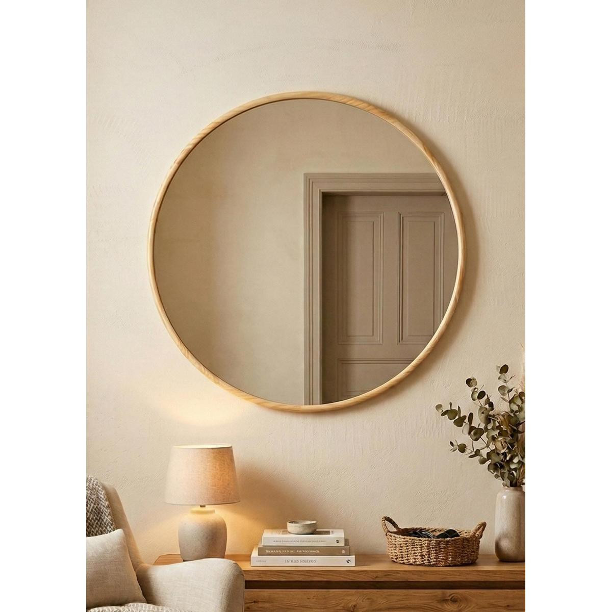 The Mia Ahşap Çerçeveli Boy Aynası – Doğal Ahşap Çerçeve, 70 x 70 cm