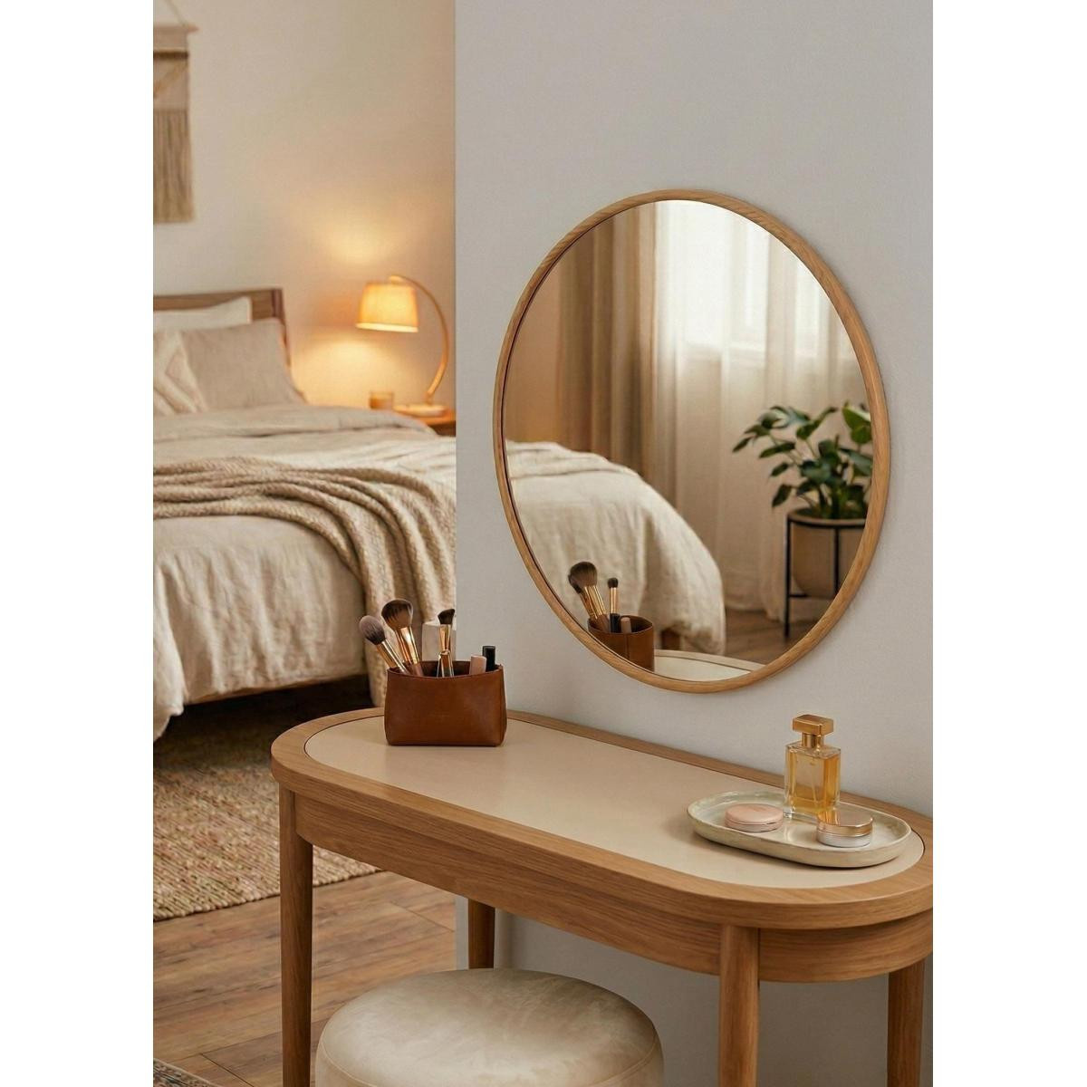 Modern, doğal veya İskandinav stil dekorasyonlarla kolayca uyum sağlayan bu ayna; hem fonksiyonel hem de dekoratif bir tamamlayıcı olarak yaşam alanlarınızda yerini alır.
