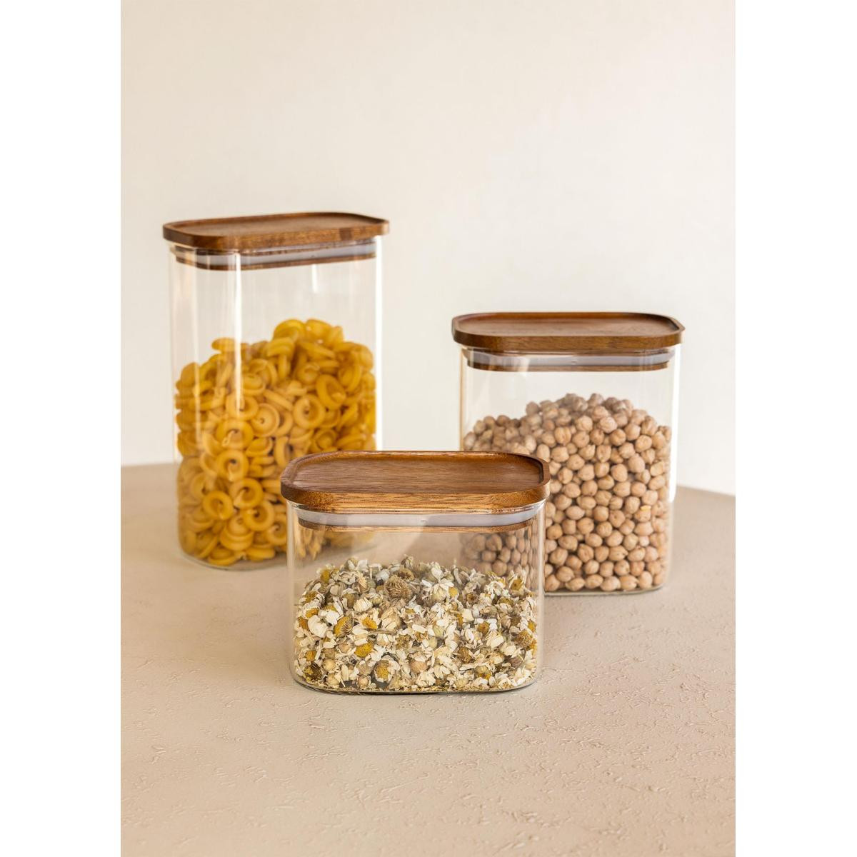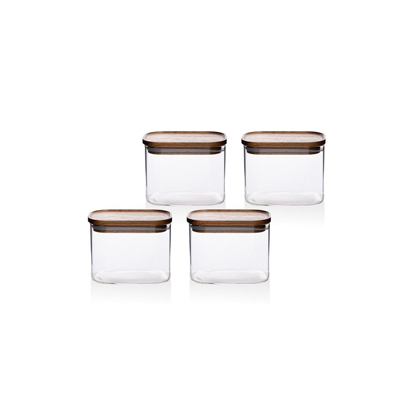 The Mia Akasya Dikdörtgen Cam Kavanoz Seti 4 Parça 500 Ml