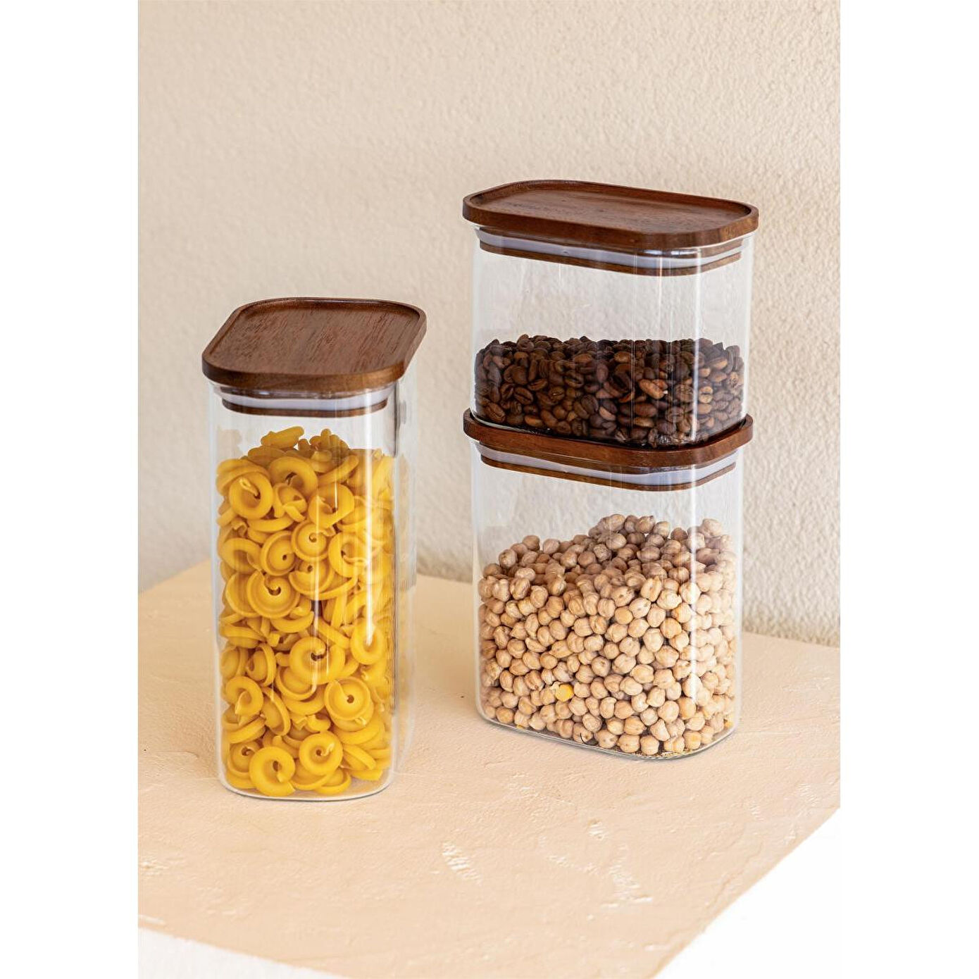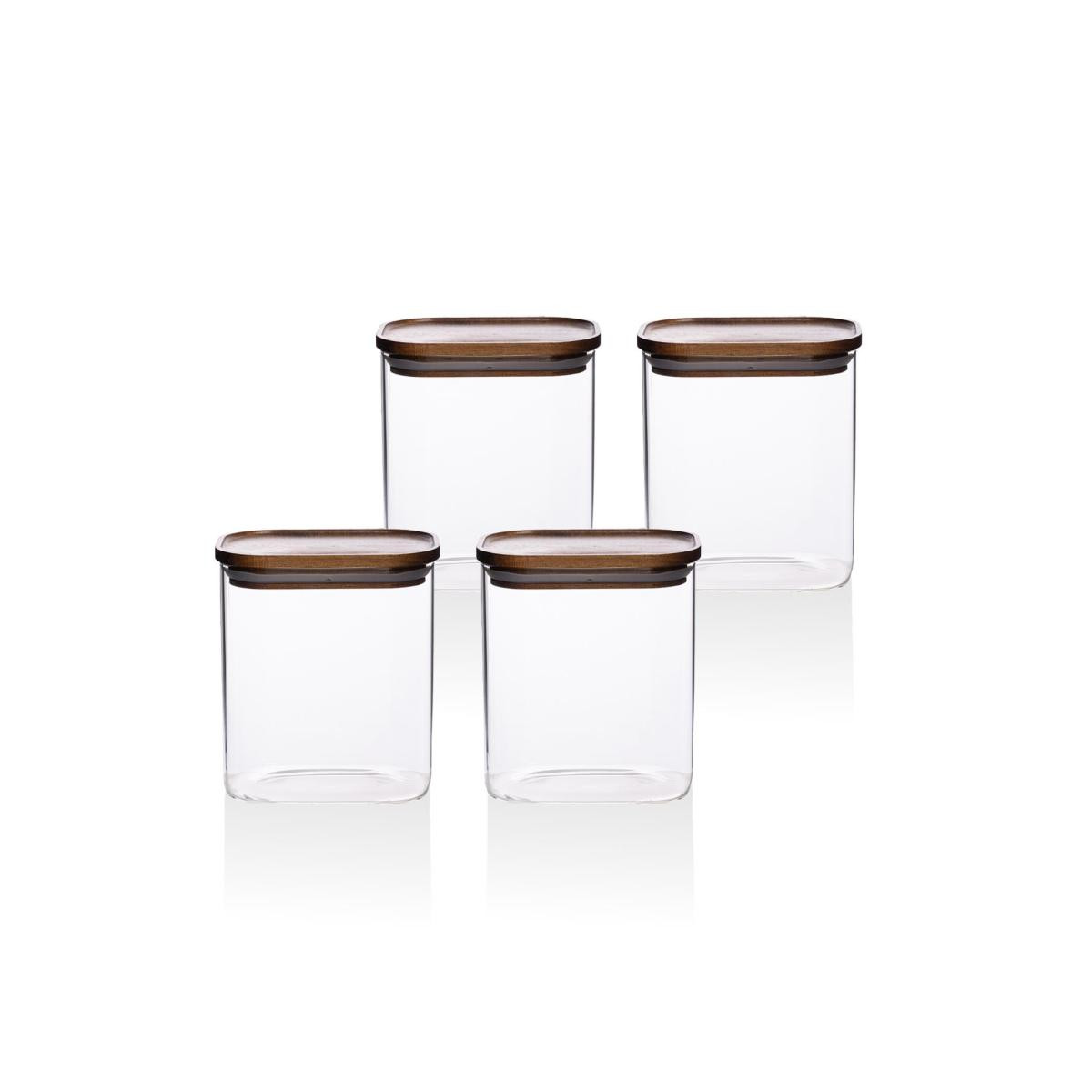 The Mia Akasya Dikdörtgen Cam Kavanoz Seti 4 Parça 900 Ml