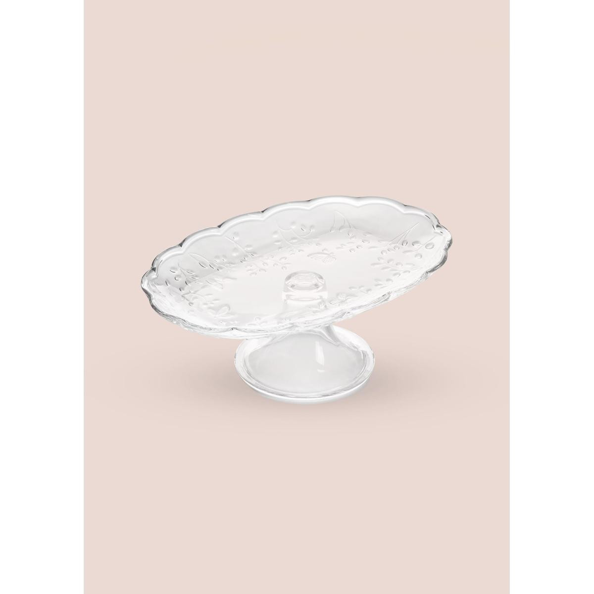 The Mia Ayaklı Cam Sunum Tabağı Oval 31x20x12 Cm Cam0498