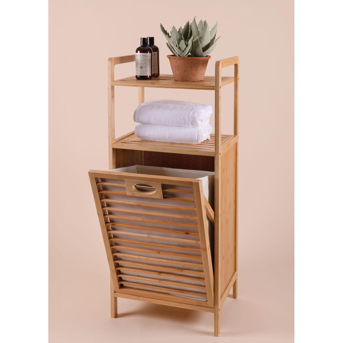 The Mia Bambu 2 Raflı Banyo Düzenleyici Dolap Ve Çamaşır Sepeti 95x40x30 Cm