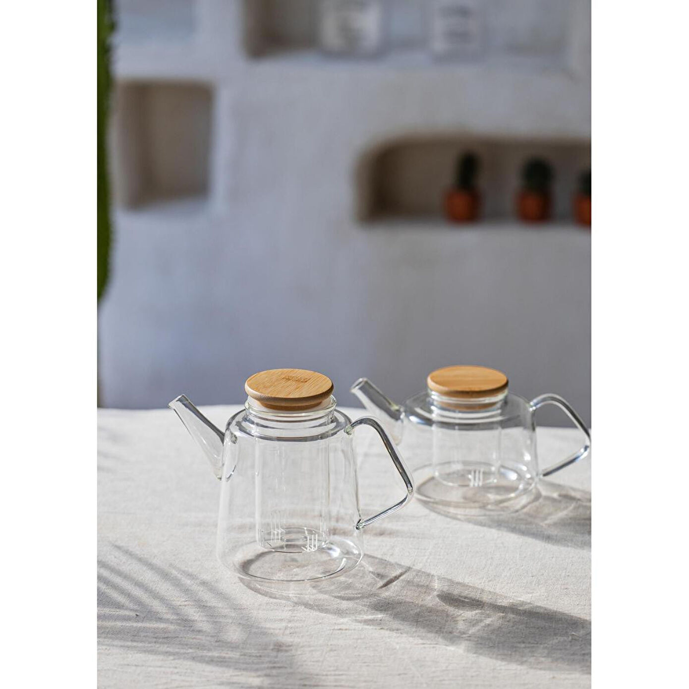 Bambu Kapaklı Cam Süzgeçli Demlik