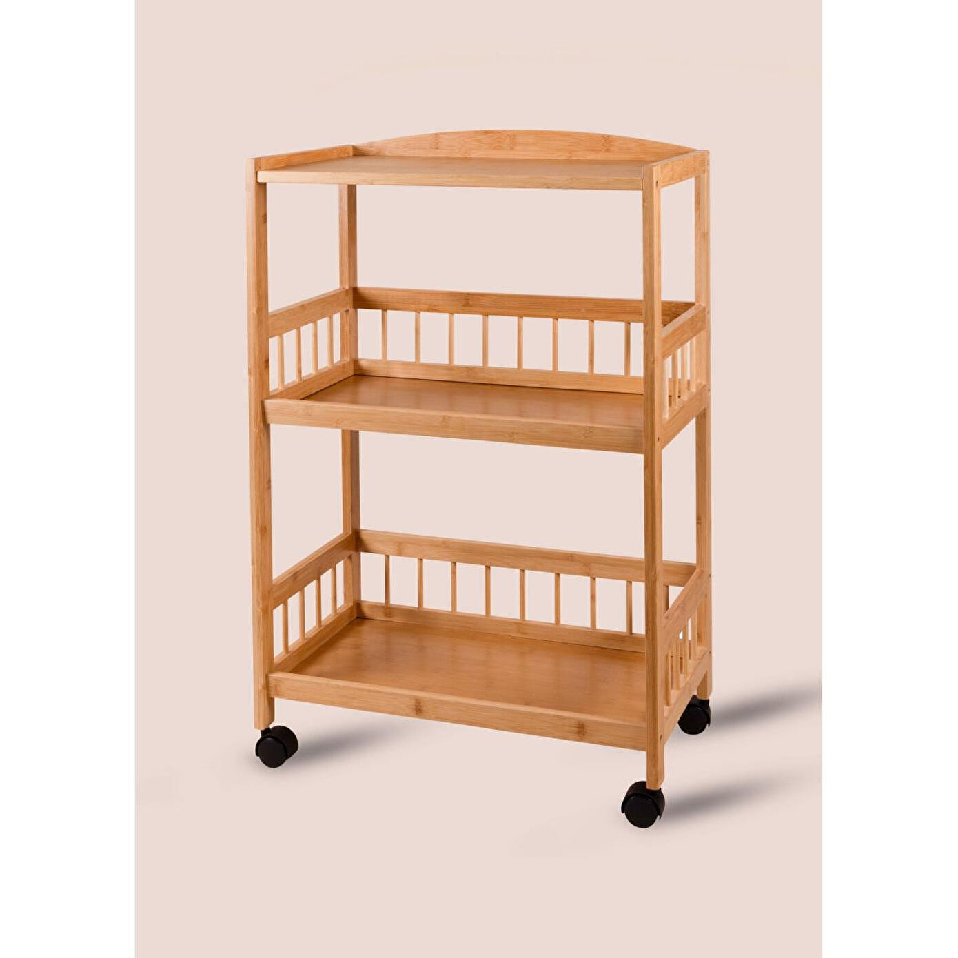 The Mia Bambu Tekerlekli 3 Katlı Düzenleyici Dolap Raf 80x53x30 Cm