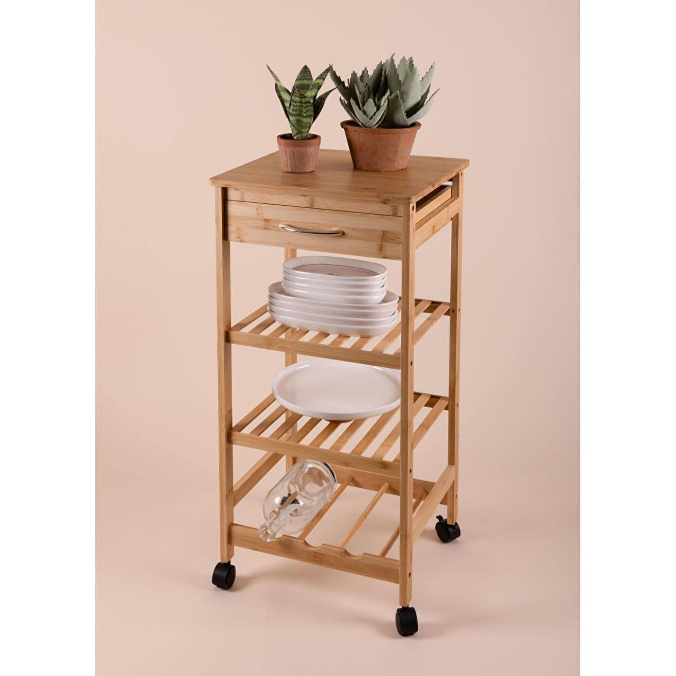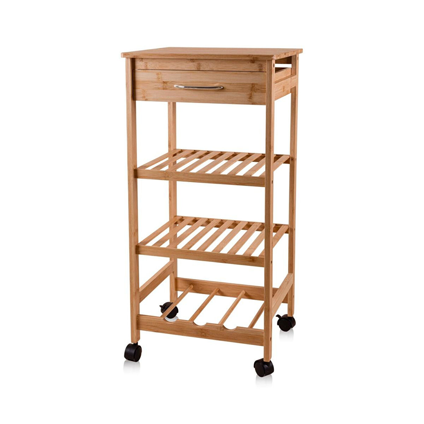 Bambu Tekerlekli 4 Katlı Düzenleyici Dolap Raf 83x40x37 Cm