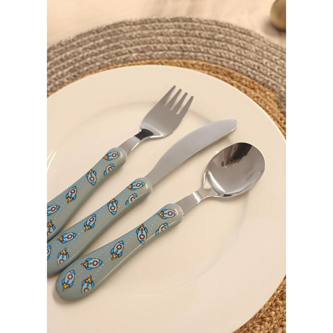 The Mia Bebek Çatal Kaşık Bıçak Takımı Rocket 3 Parça