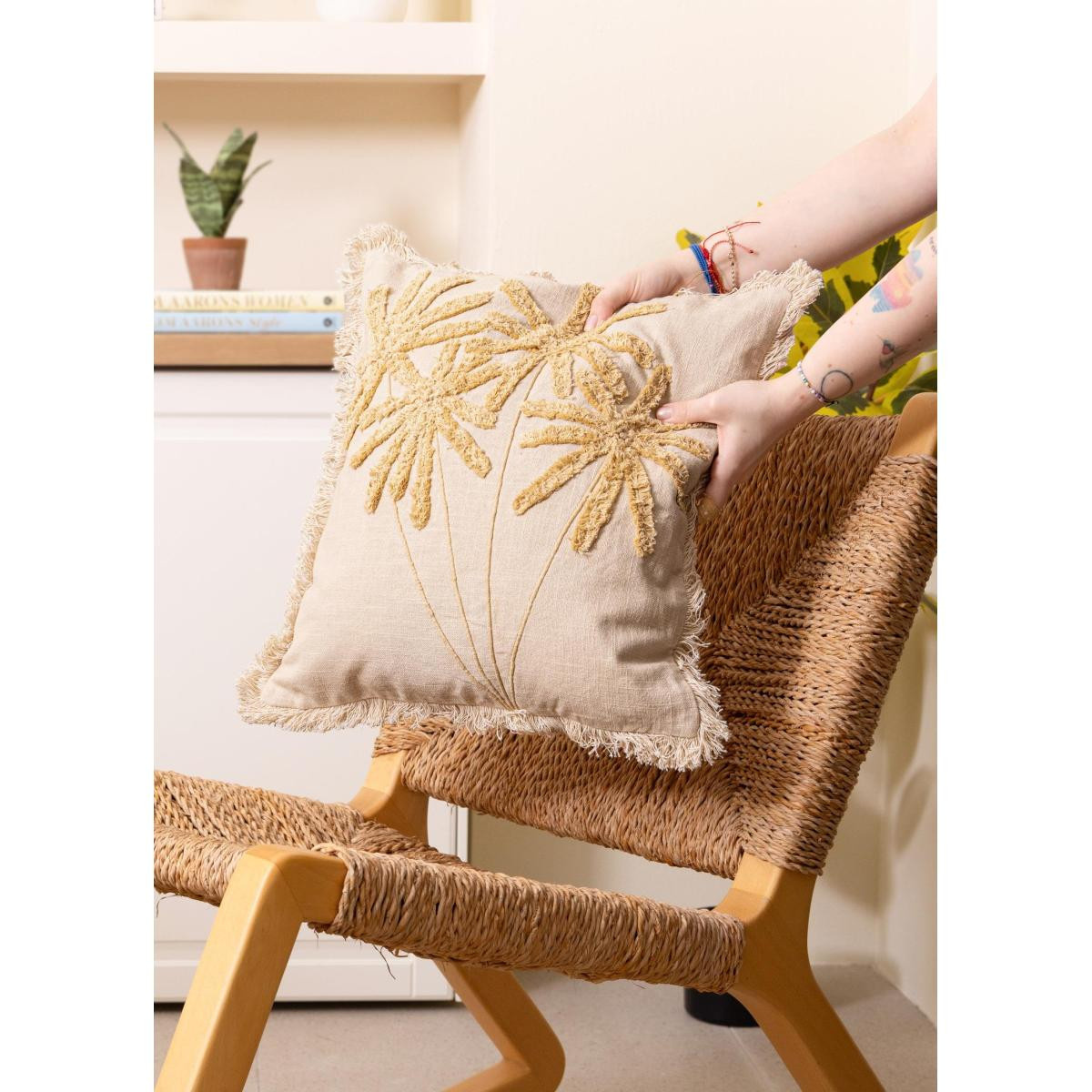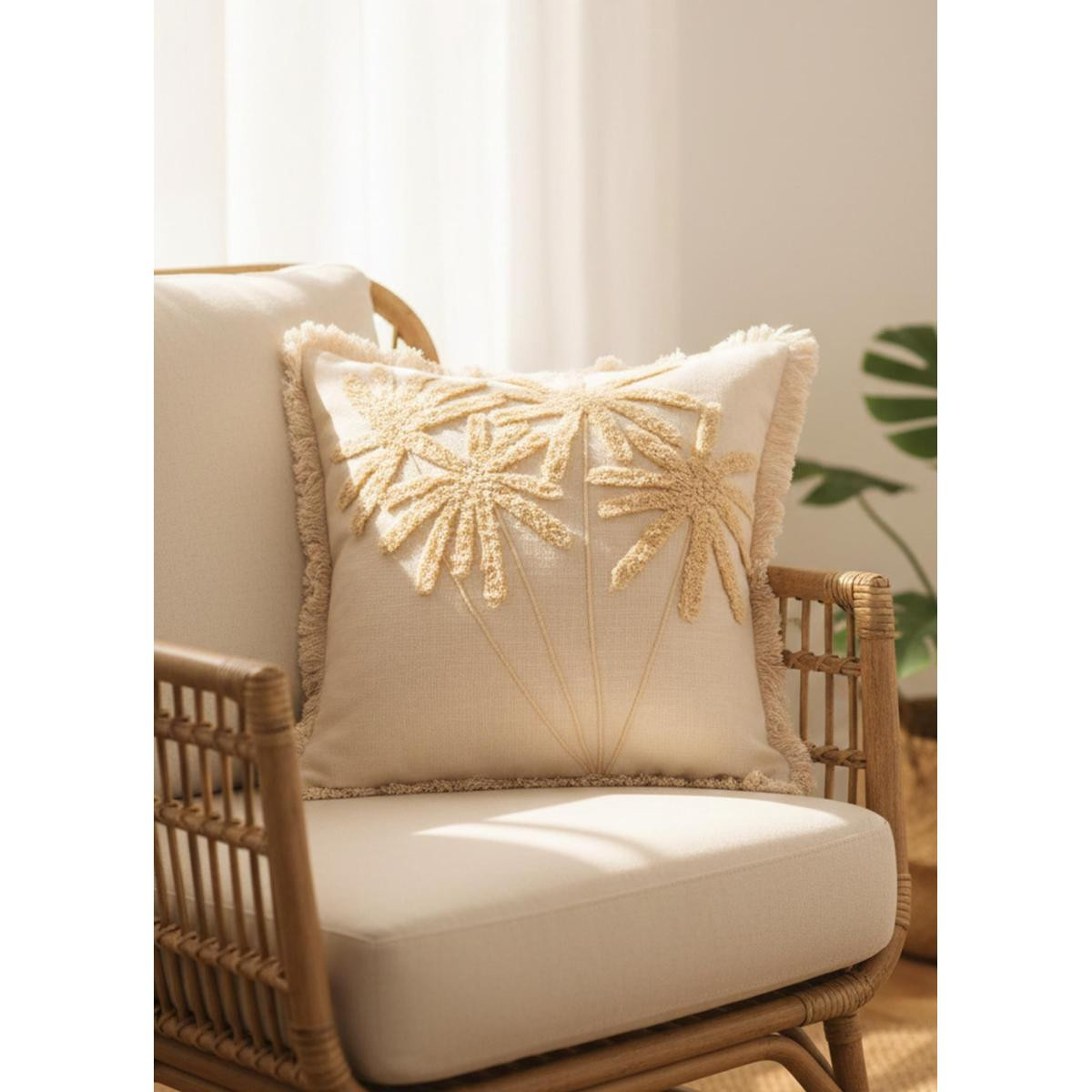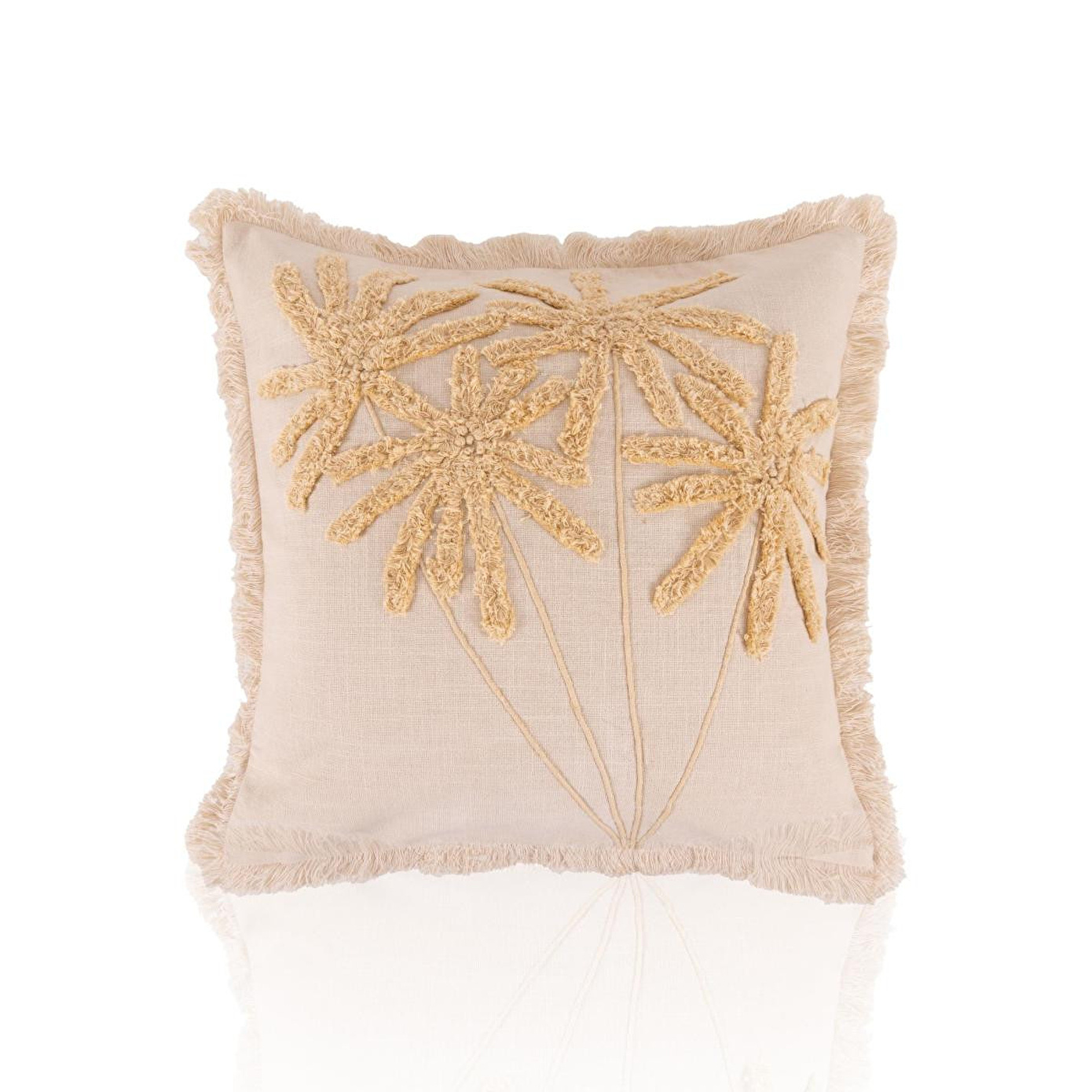 The Mia Bej Bohem Palmiye Desenli %100 Pamuk Kırlent 45x45 cm