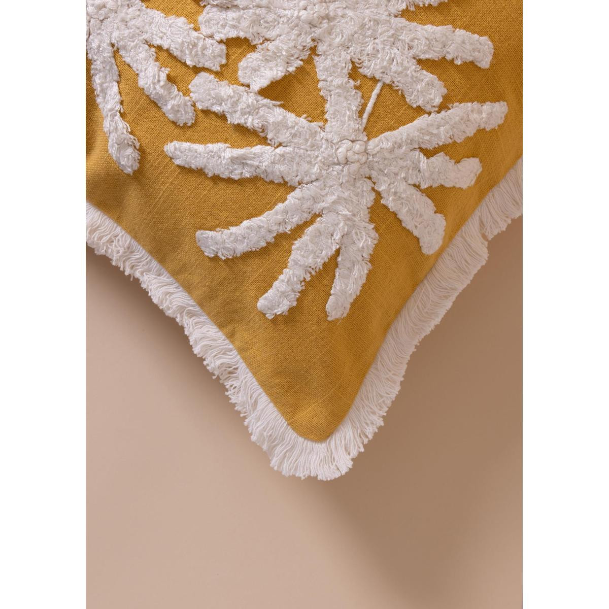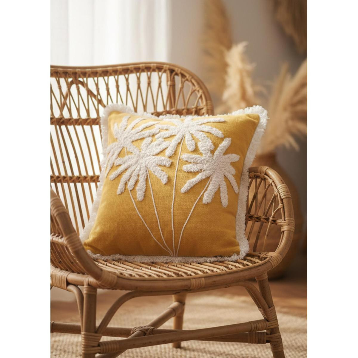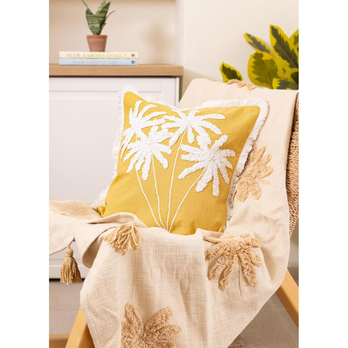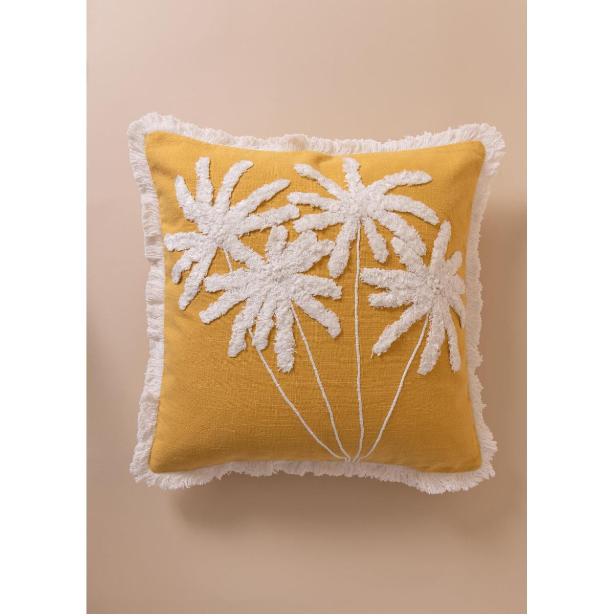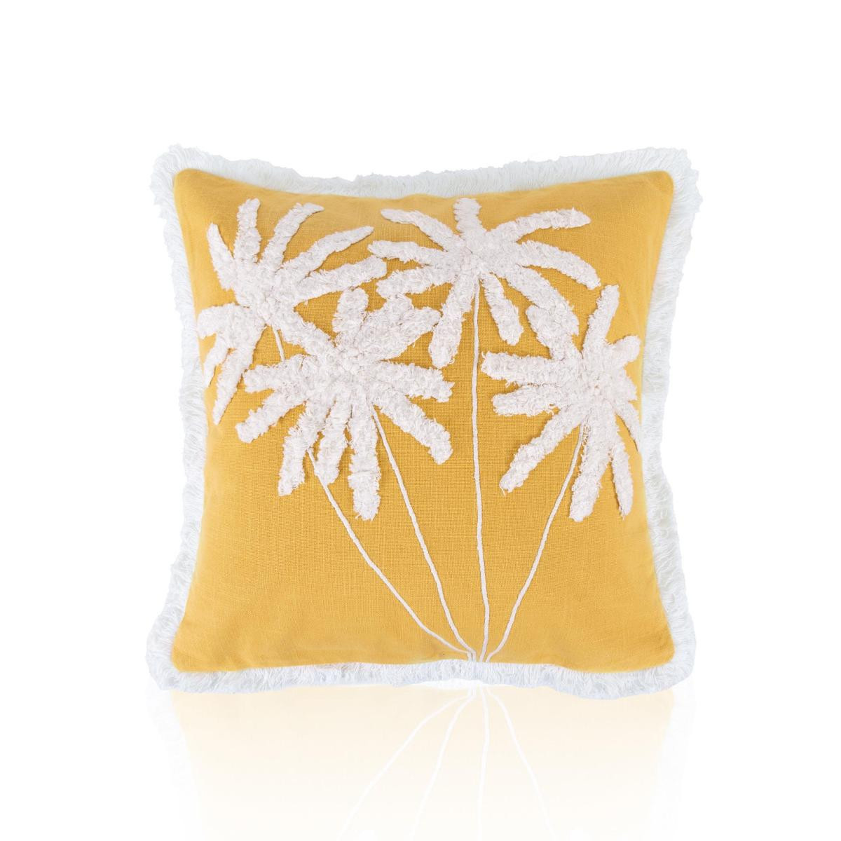 %100 pamuk dokuma kumaş sayesinde doğal ve nefes alabilen yapıKabartmalı palmiye deseni ile güçlü ve karakterli stilHardal tonuyla enerjik ve modern dekorasyon uyumuSaçak detaylarıyla özgün ve bohem görünümHem tekli kullanım hem kombin dekorasyon için ideal ölçüYıkama Talimatı