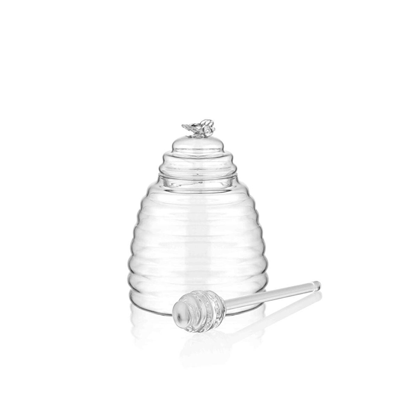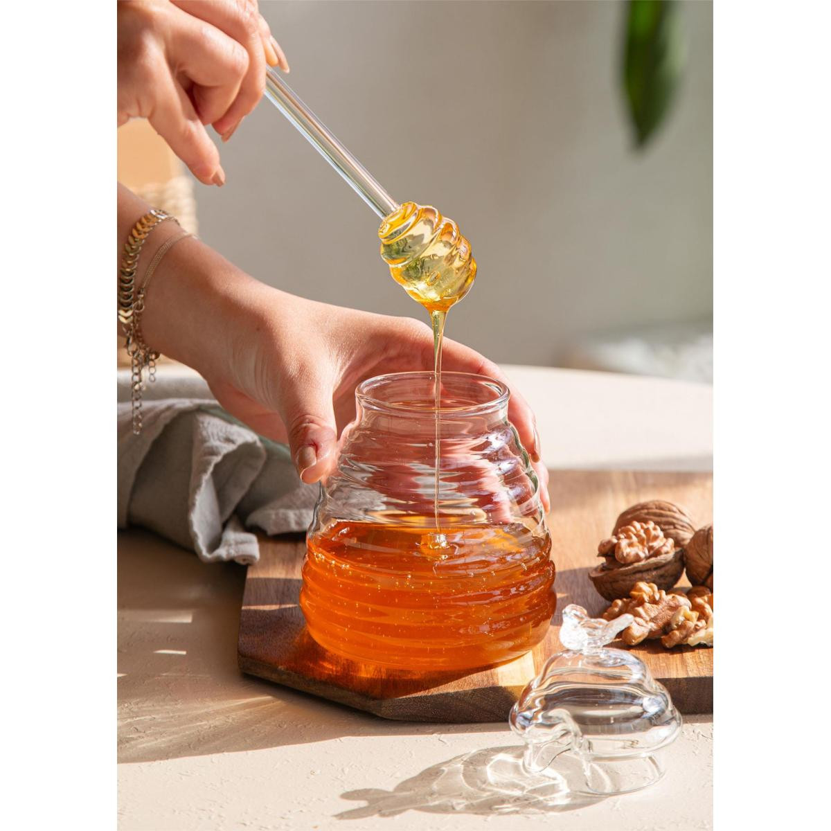 Cam bal kavanozu ve bal kaşığı seti Maya arı kovanından ilham alınarak tasarlandı.