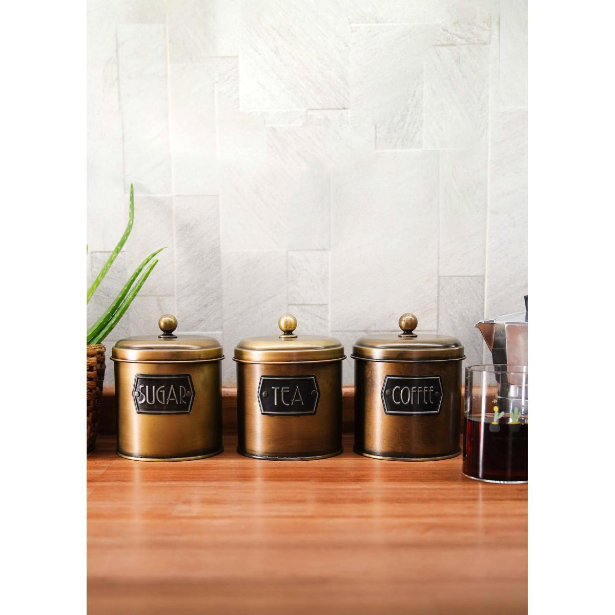 Çay Şeker Kahve Kavanoz 3lü Set 1,30 Lt Gold