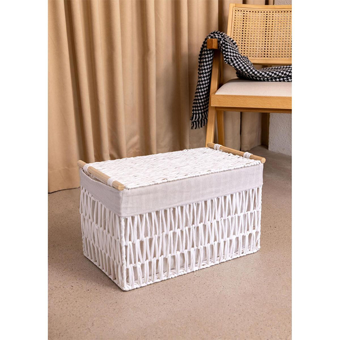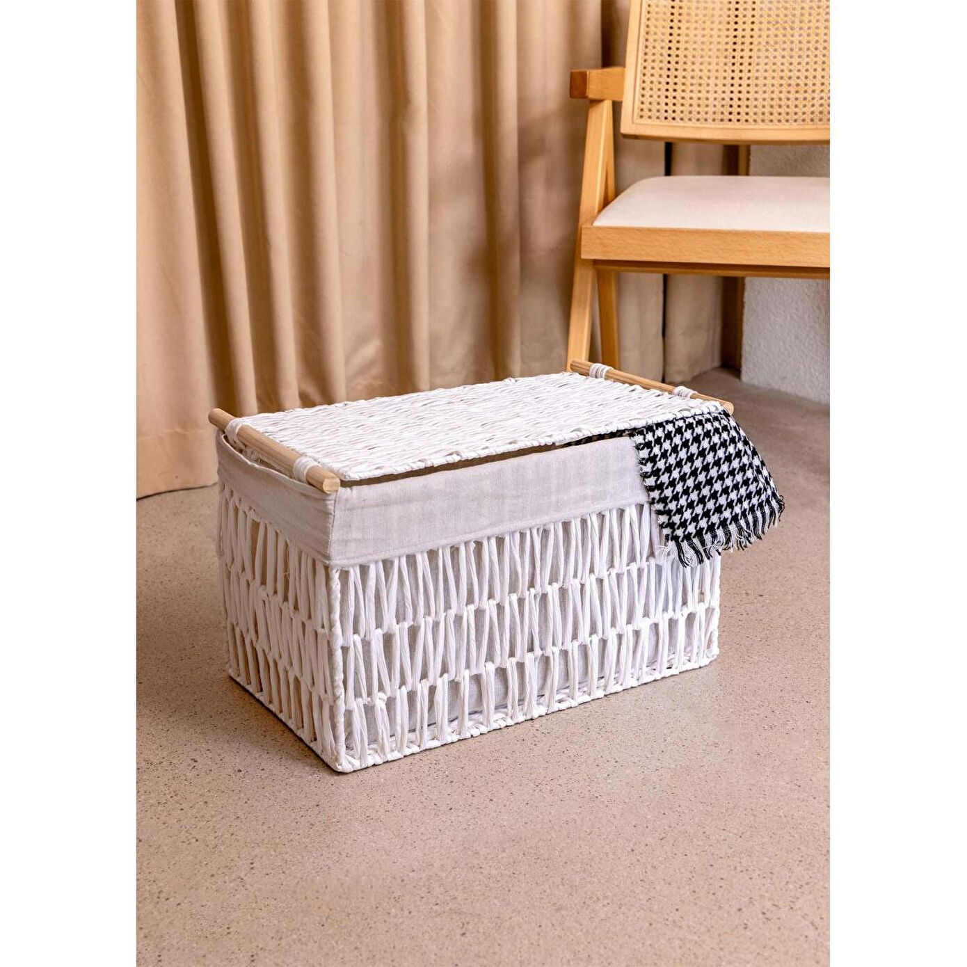 The Mia Cesta Hasır Organizer Sepet Beyaz 52x30x32 Cm