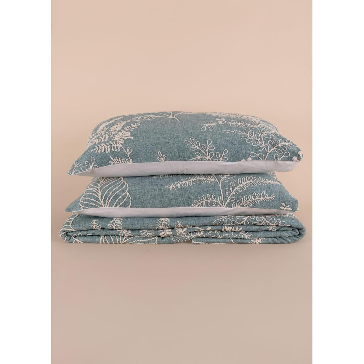 The Mia Yeşil %100 Pamuk Desenli Yatak Örtüsü Seti – 3 Parça 280x260 cm