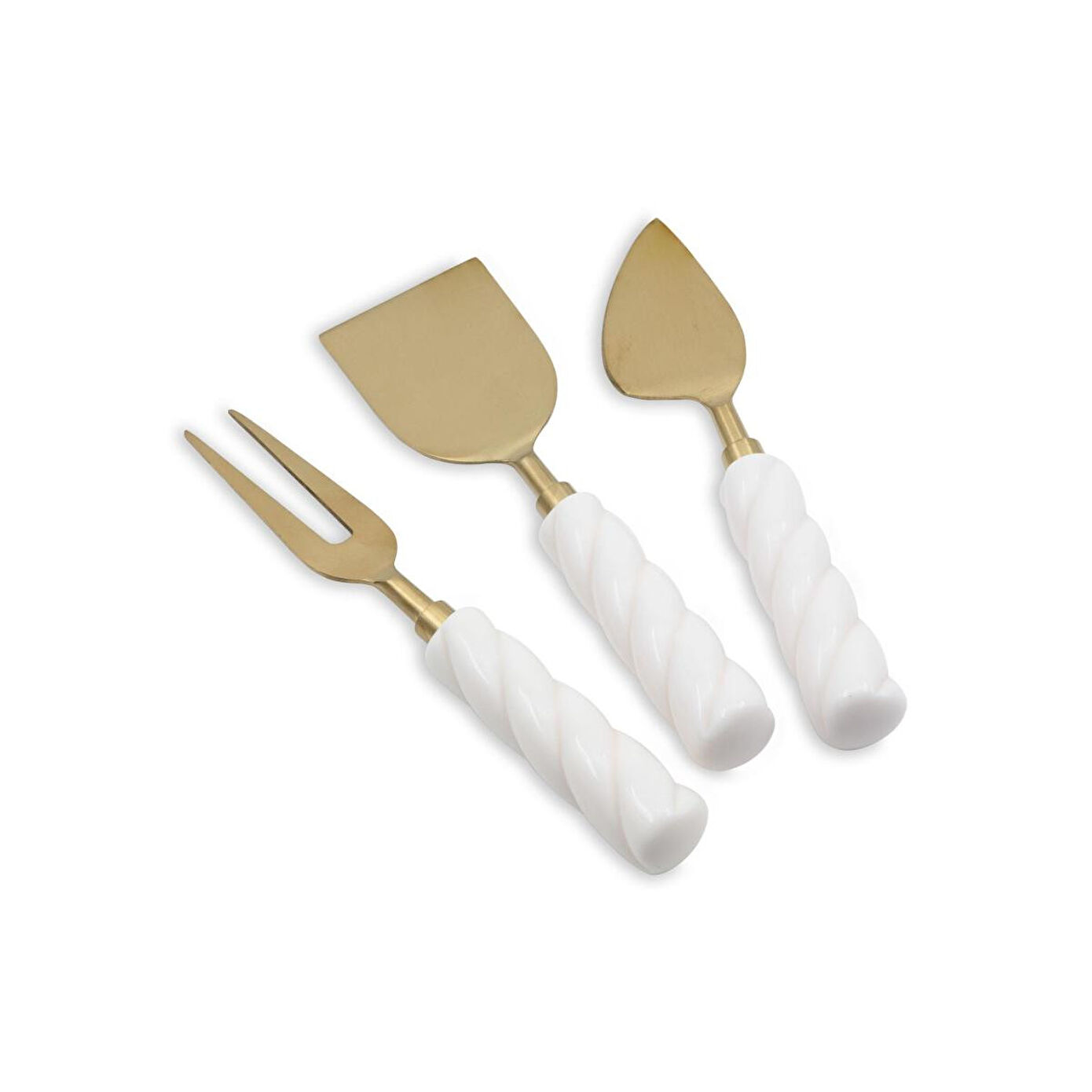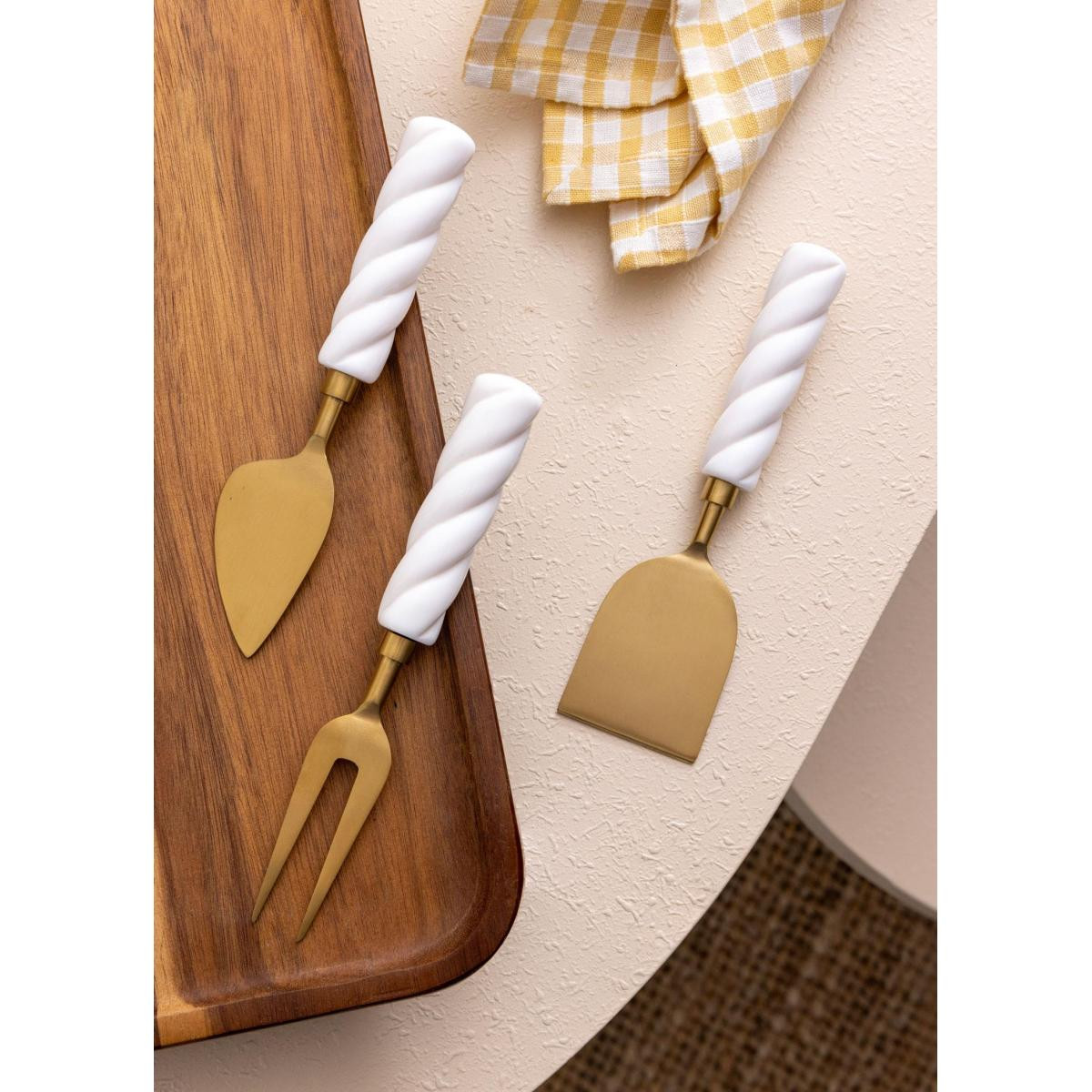 Ürün Tipi: Peynir Servis Takımı Set İçeriği: 3 parça / 3’lü set Uzunluk: 19 cmKaplama: Mat Gold PVD FinishSap Malzemesi: SeramikRenk: Mat gold – beyazKullanım Alanı: Peynir ve şarküteri sunumlarıBakım ve Temizlik