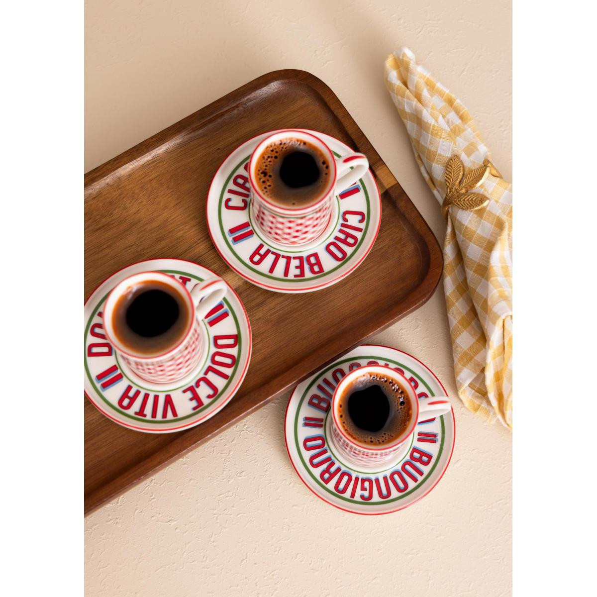 Şık ve modern desenleri ile estetik sunum sağlar Yüksek kaliteli porselen malzemesi sayesinde dayanıklı ve uzun ömürlü kullanım sağlar. 6 kişilik set içeriği sayesinde misafirlerinize zarif ve uyumlu kahve sunumları hazırlayabilirsiniz. 100 cc hacmiyle kahve sunumları için ideal ölçüdedir Bulaşık makinesinde yıkanabilir pratik kullanım sunar Avrupa Birliği üretim standartlarına uygun kaliteli üretimYıkama Talimatı