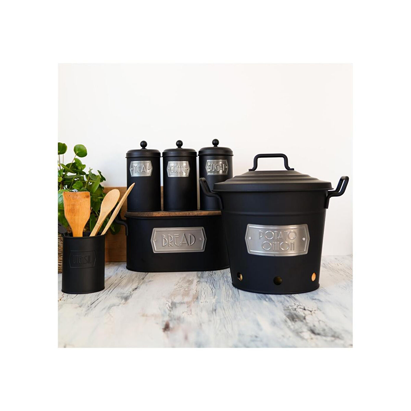 The Mia Ekmek Kutusu Ahşap Kapaklı Siyah Mgl0027