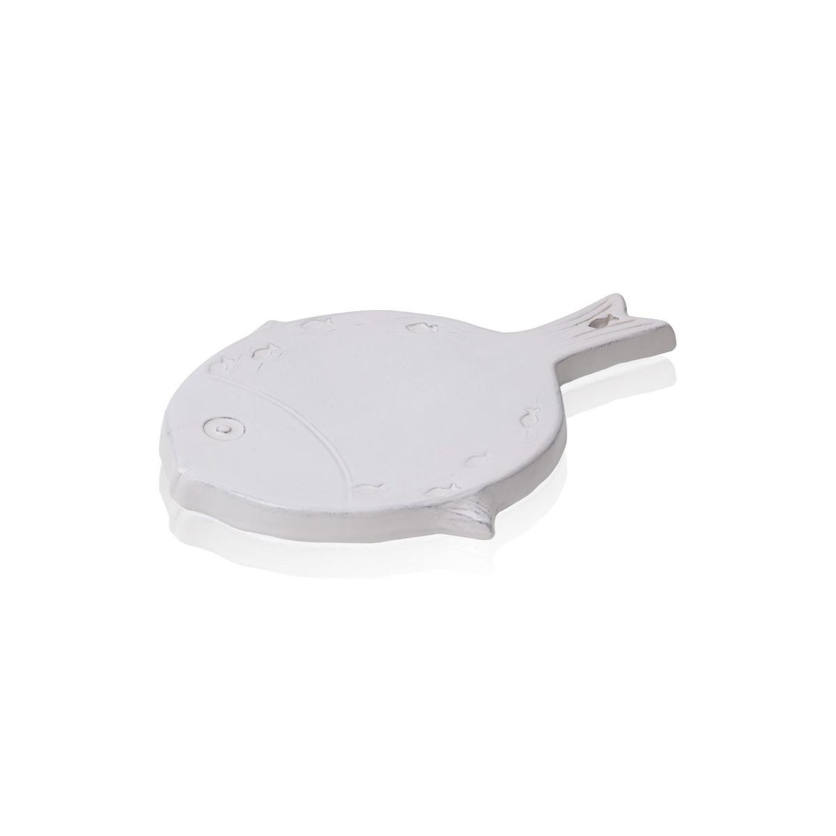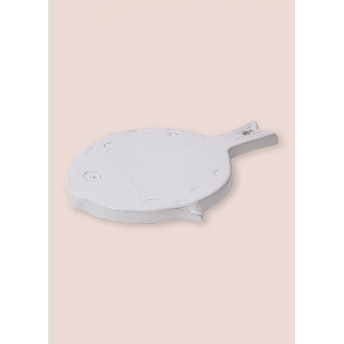 Balık Motifli Seramik Sunum Tabağı 35 cm – Beyaz Sunum Tabağı