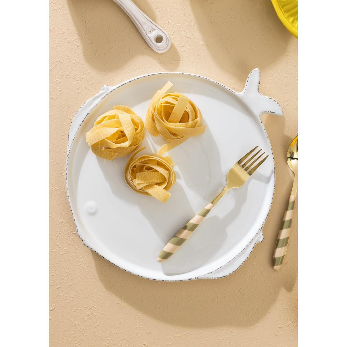İtalya menşeli bu özel tasarım, Akdeniz esintisini sofralara taşırken sade beyaz rengi sayesinde farklı sofra düzenleriyle kolayca uyum sağlar. Fonksiyonel kullanımının yanı sıra dekoratif bir servis tabağı olarak da tercih edilebilir.