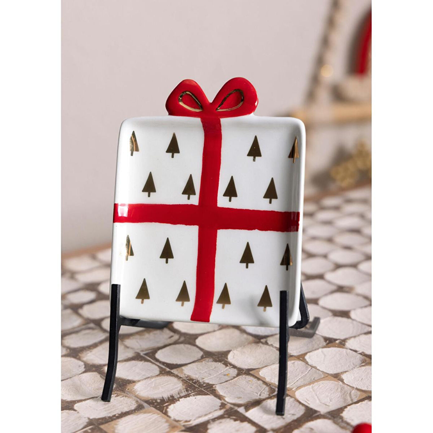 The Mia Fiyonk Figürlü Servis Tabağı Ağaç Dekorlu 22x17 Cm