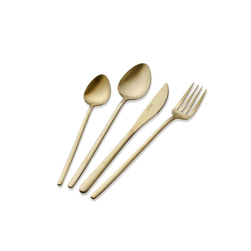 The Mia Giallo Çatal Kaşık Bıçak Takımı Mat Gold 24 Parça