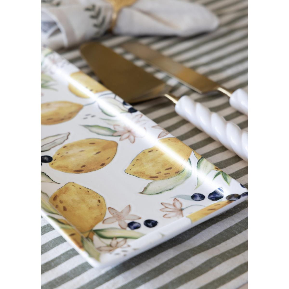 Sofralarınızda yarattığı Akdeniz esintisiyle çok sevilen Limoncello Serisi, koleksiyonun en yeni ve en işlevsel parçası olan 35x16 cm Dikdörtgen Servis Tabağı ile devam ediyor. Mevcut setlerinizi tamamlamak veya sunumlarınıza taze bir soluk getirmek için tasarlanan bu yeni form, serinin imzası haline gelen canlı limon ve botanik desenlerini taşıyor.