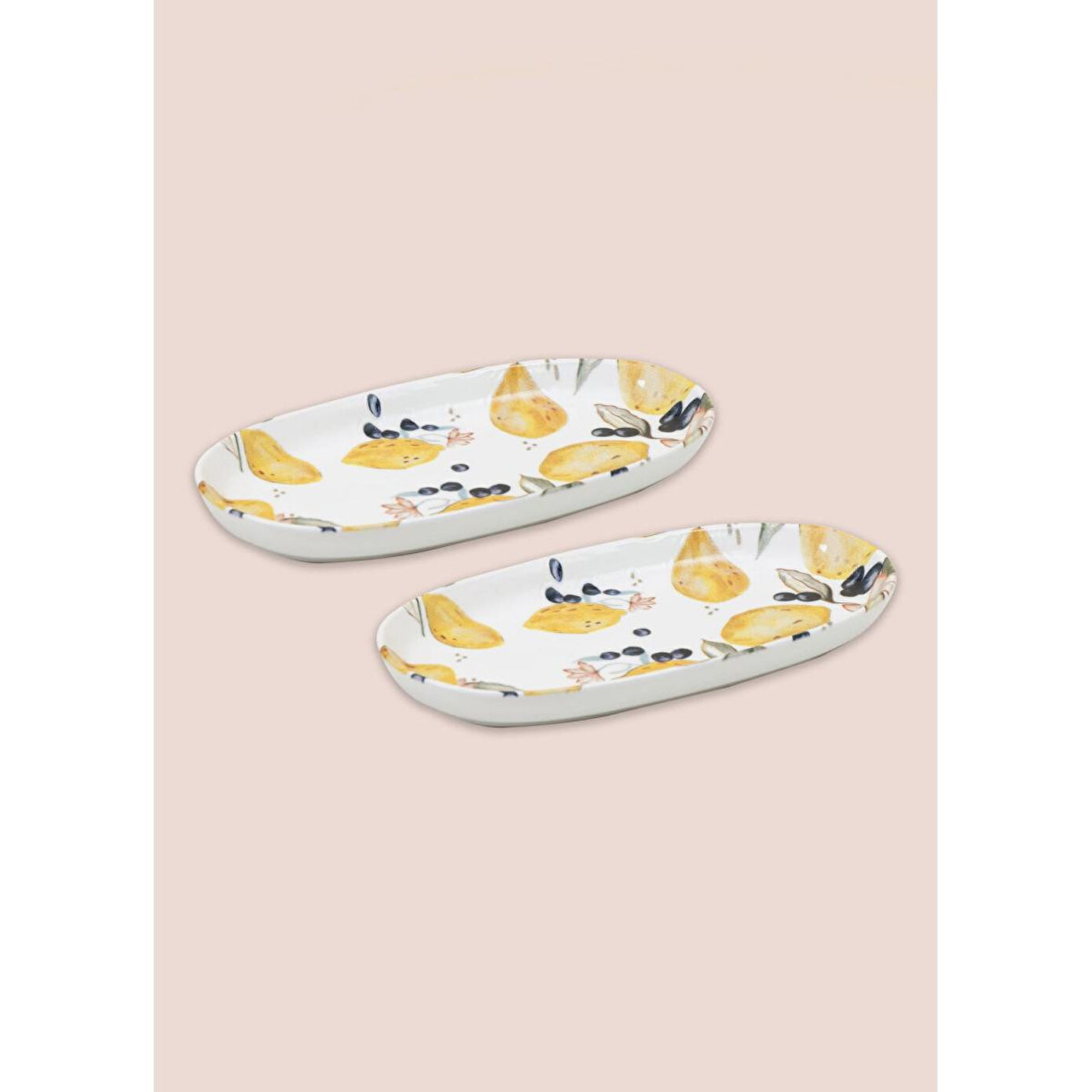 The Mia Limoncello 2'li Seramik Oval Servis Tabağı Seti - 26 cm