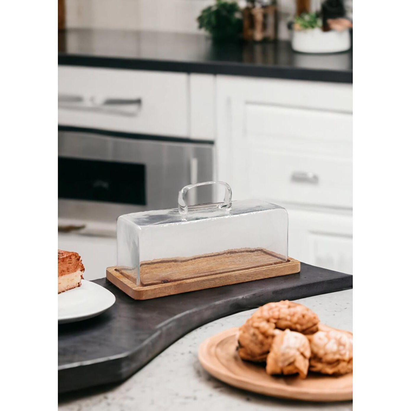 Madera Dikdörtgen Kek Saklama Fanusu