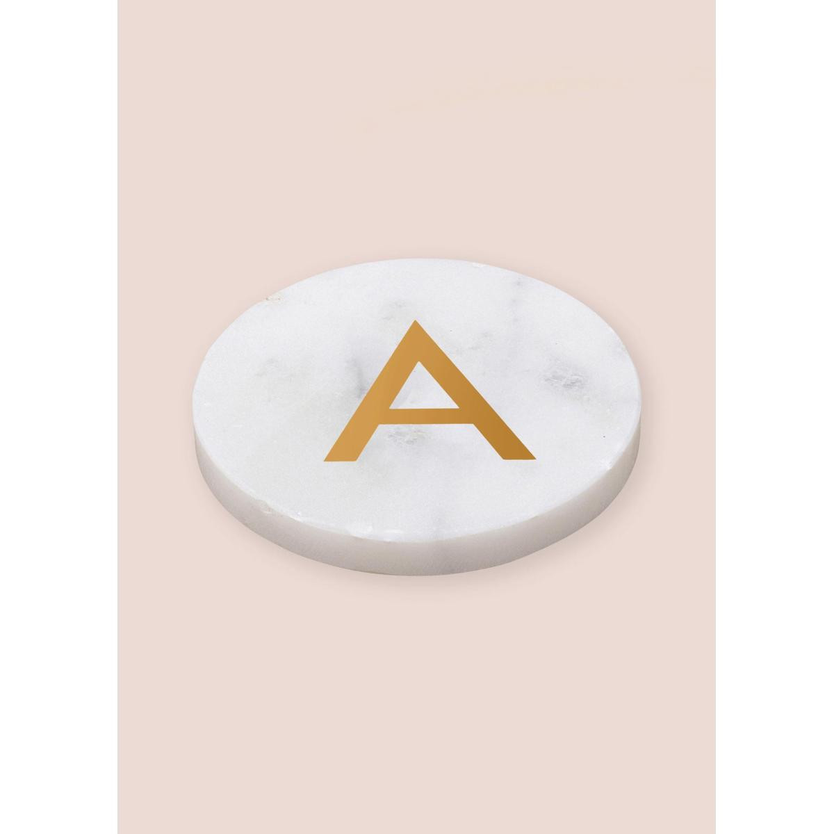 Doğal mermer dokusu ve üzerindeki el işçiliği pirinç harf detayıyla hem fonksiyonel hem dekoratif bir kullanım sunar. Minimal ve zamansız tasarımı sayesinde farklı dekorasyon stillerine kolayca uyum sağlar. Masa üzerinde estetik bir görünüm oluştururken bardak ve fincanlar için koruyucu bir yüzey sunar.