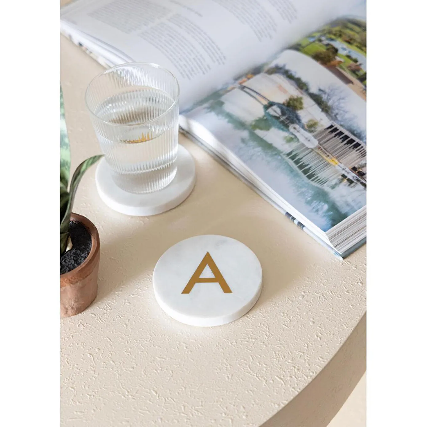 Doğal Mermer Pirinç Harfli Bardak Altlığı | Premium Dekoratif