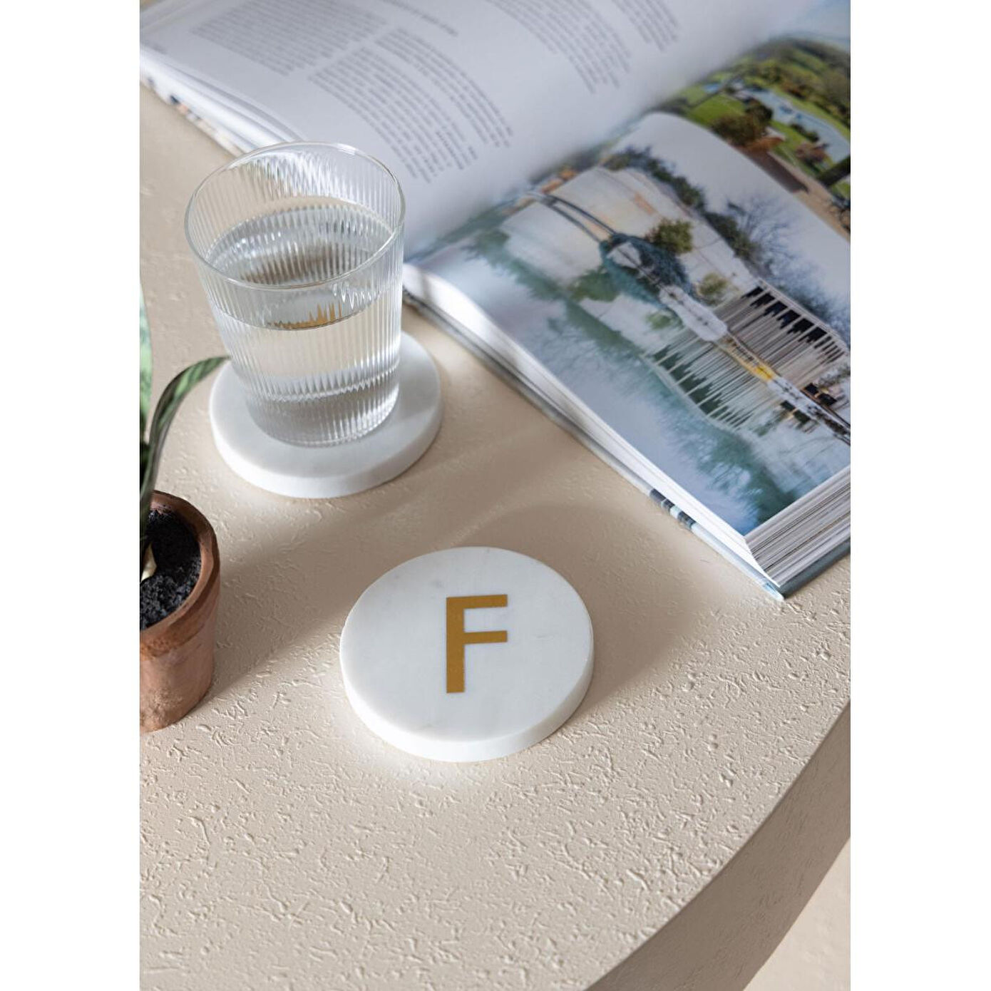 Doğal Mermer Pirinç Harfli Bardak Altlığı | Premium Dekoratif
