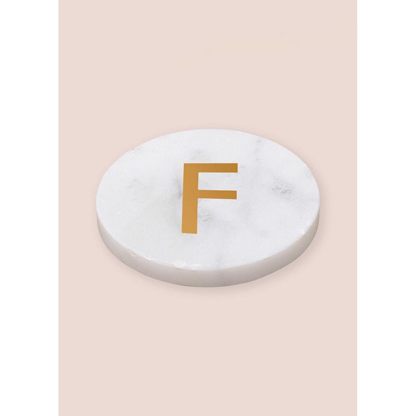 Doğal mermer dokusu ve üzerindeki el işçiliği pirinç harf detayıyla hem fonksiyonel hem dekoratif bir kullanım sunar. Minimal ve zamansız tasarımı sayesinde farklı dekorasyon stillerine kolayca uyum sağlar. Masa üzerinde estetik bir görünüm oluştururken bardak ve fincanlar için koruyucu bir yüzey sunar.