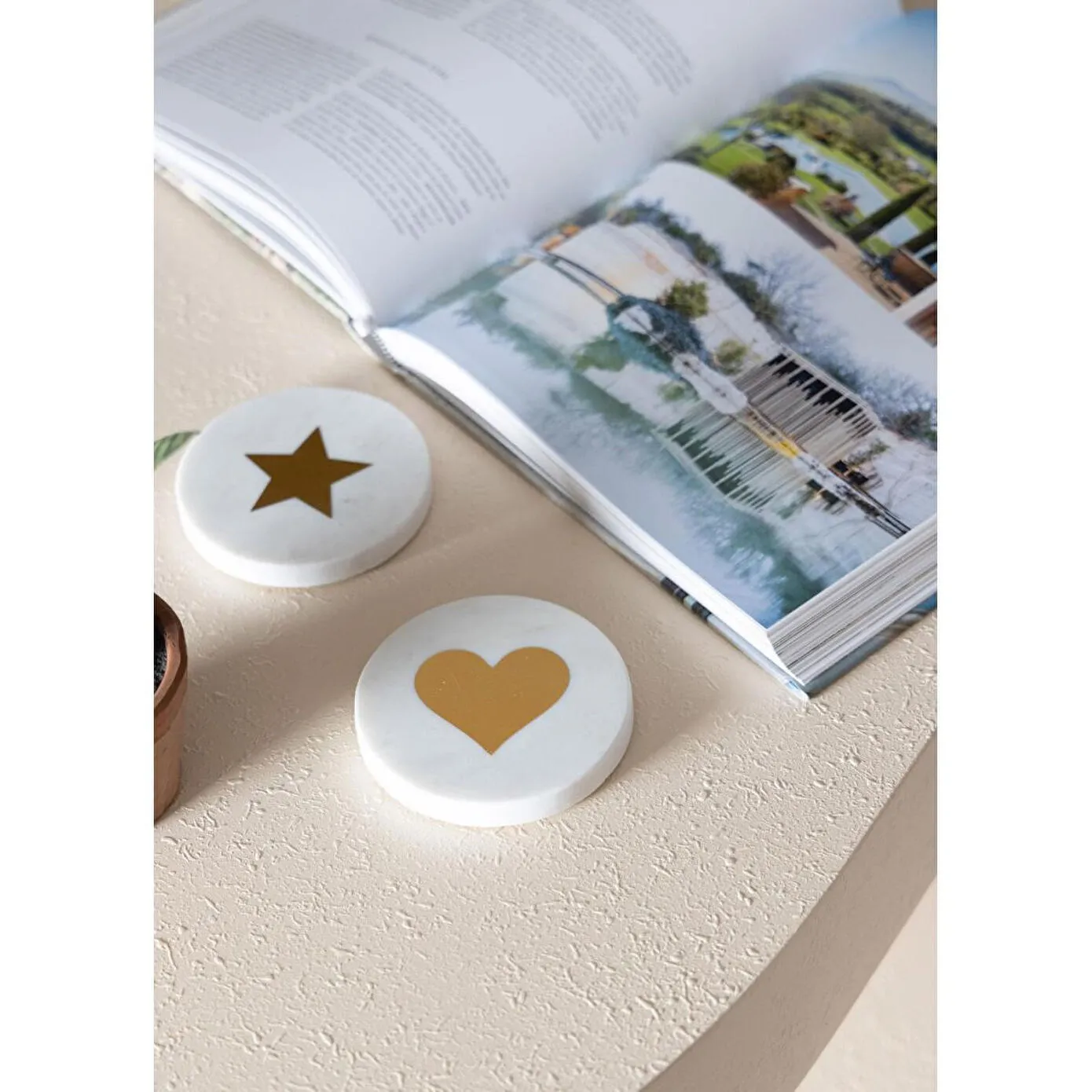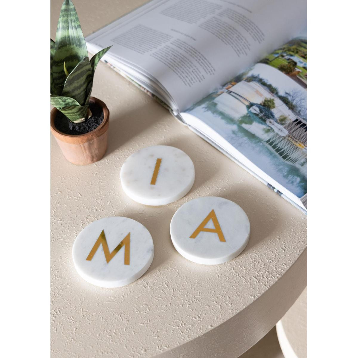 Doğal Mermer Pirinç Harfli Bardak Altlığı | Premium Dekoratif