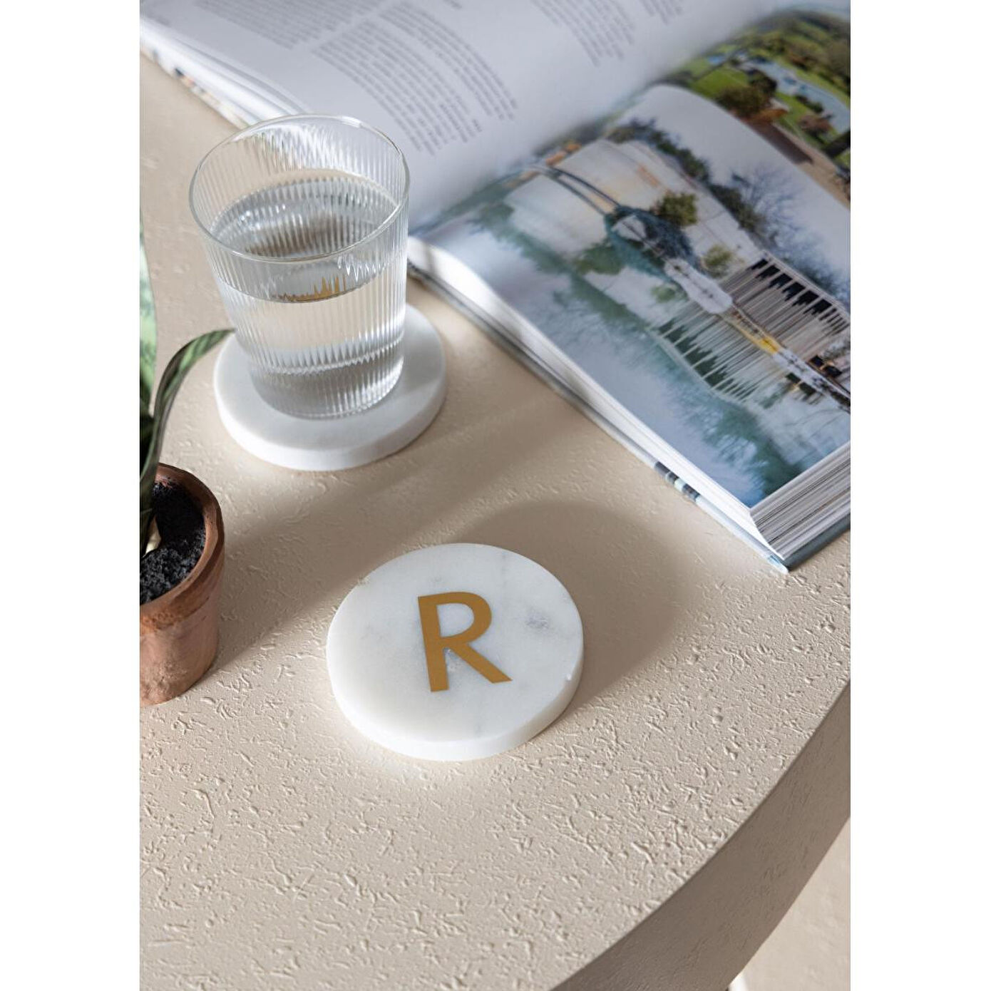 Doğal Mermer Pirinç Harfli Bardak Altlığı | Premium Dekoratif