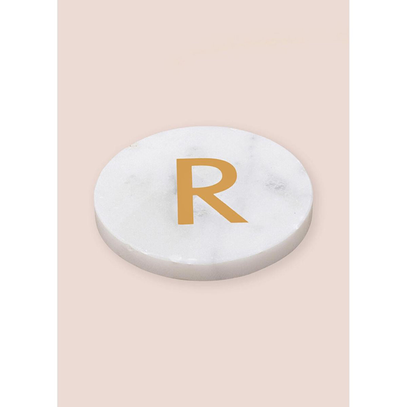 Doğal mermer dokusu ve üzerindeki el işçiliği pirinç harf detayıyla hem fonksiyonel hem dekoratif bir kullanım sunar. Minimal ve zamansız tasarımı sayesinde farklı dekorasyon stillerine kolayca uyum sağlar. Masa üzerinde estetik bir görünüm oluştururken bardak ve fincanlar için koruyucu bir yüzey sunar.