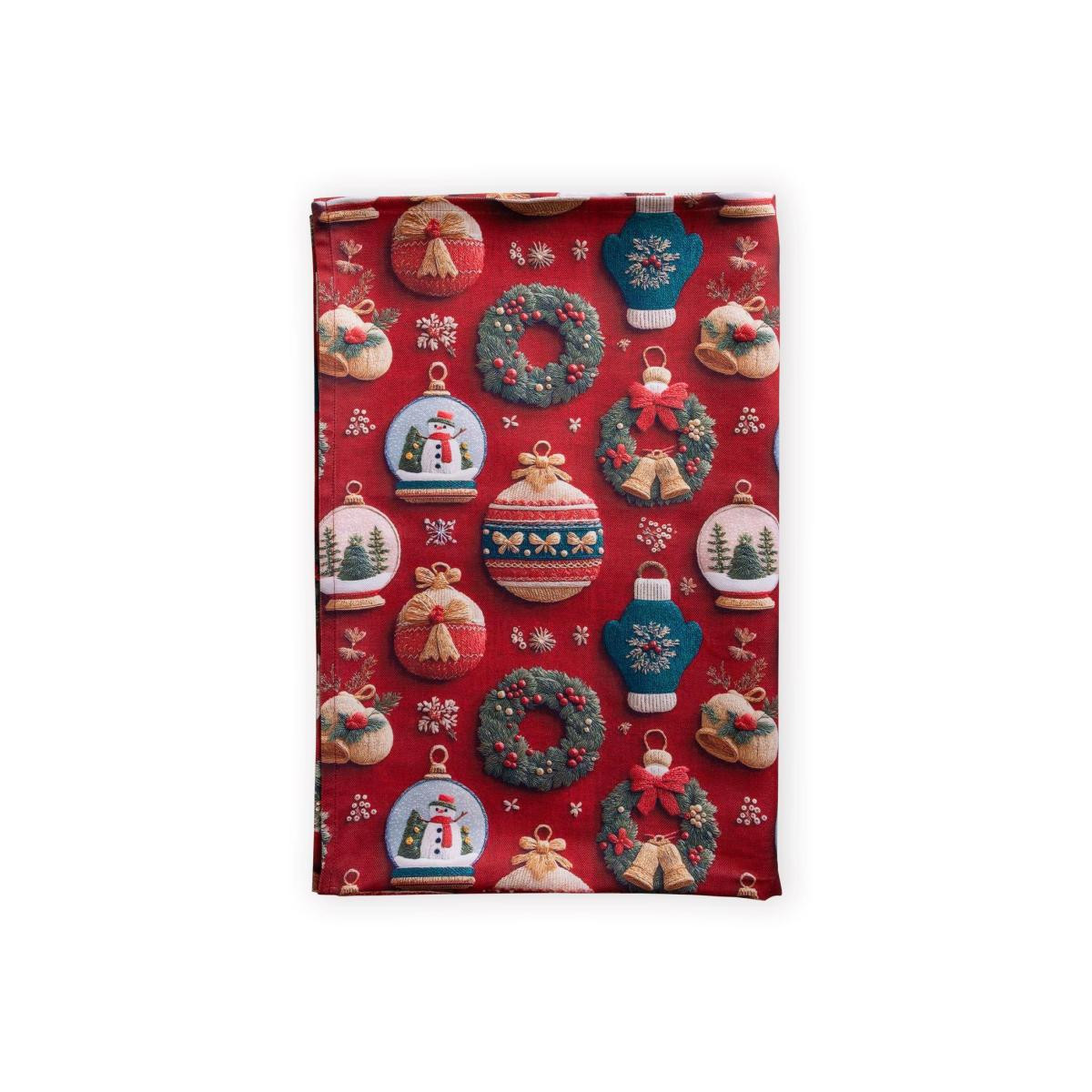 The Mia Figür Desenli Kırmızı Masa Örtüsü 150 x 240 cm