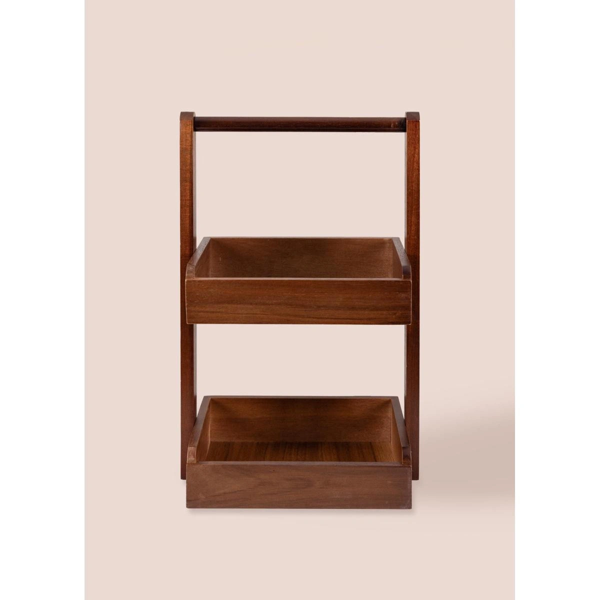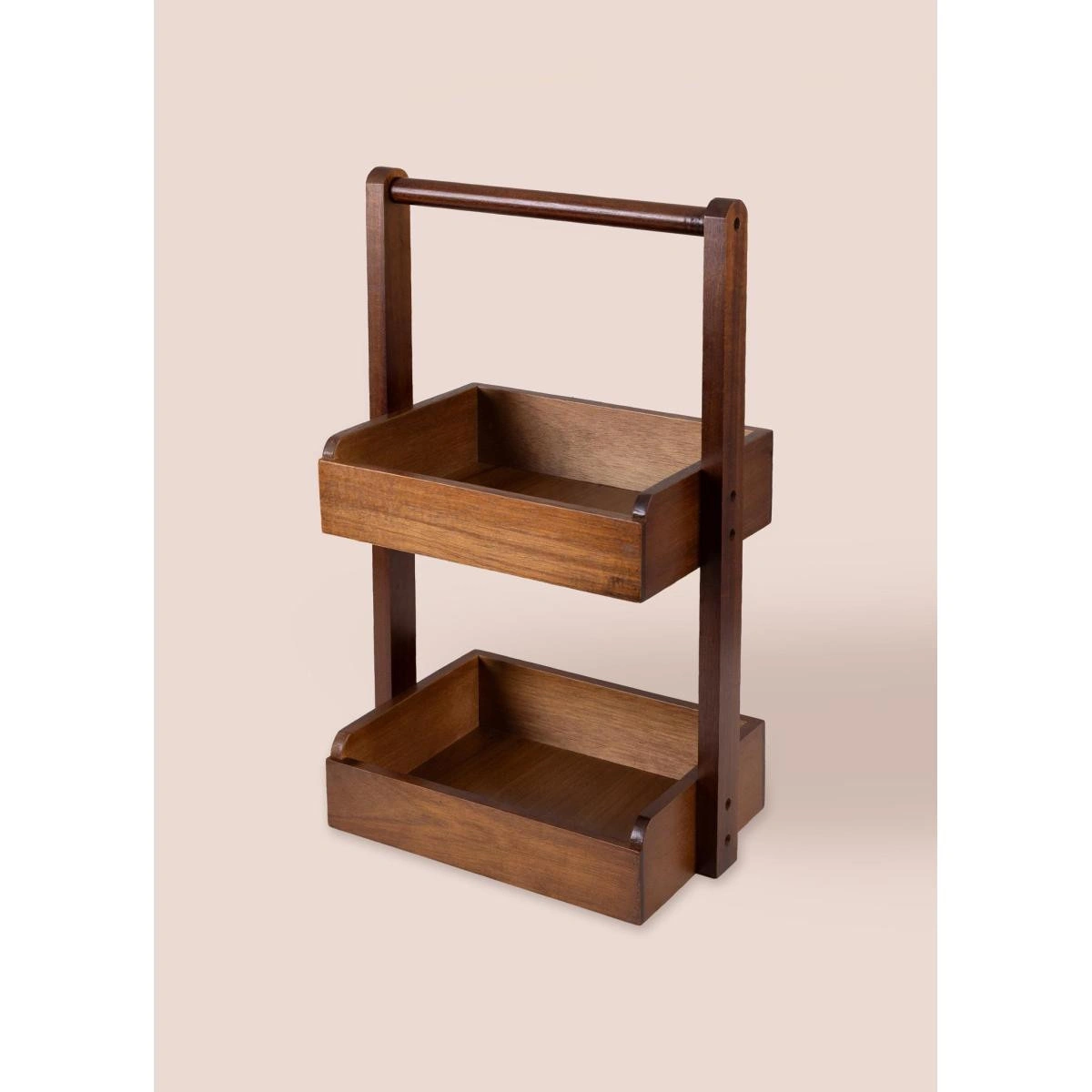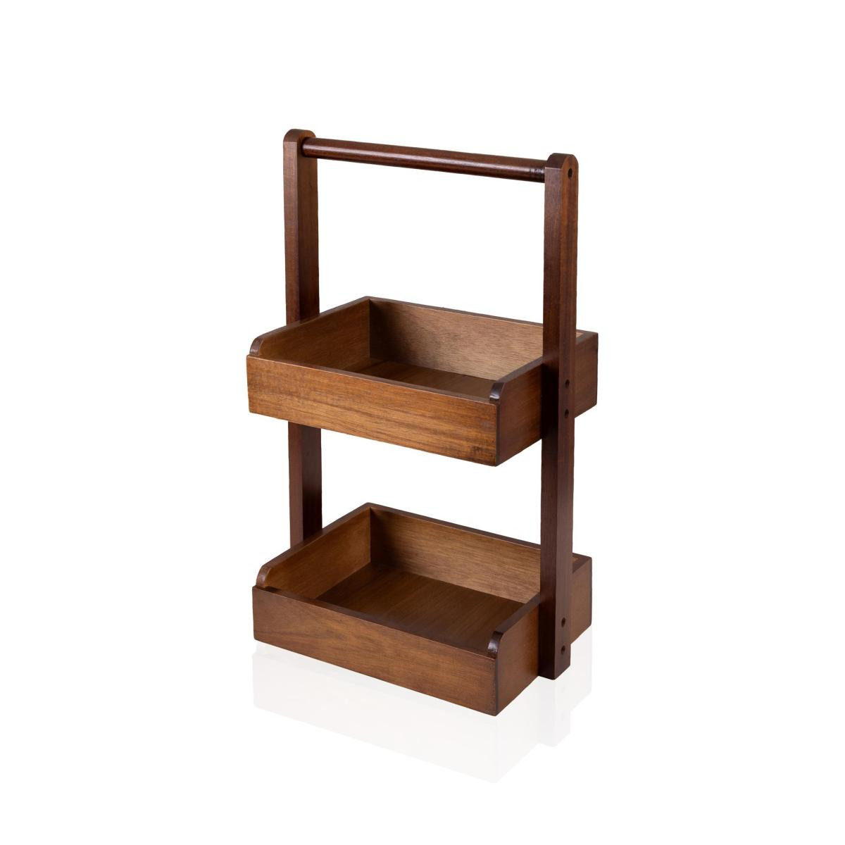 Natura Akasya 2 Katlı Düzenleyici Raf 27 x 18 x 44 cm – Doğal Ahşap Organizer