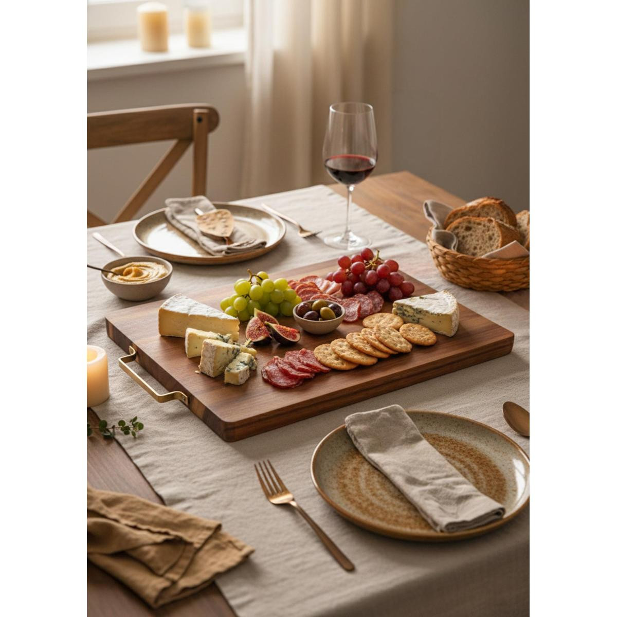 Doğal ahşap damar geçişleri her ürünü benzersiz kılar ve sofralara rustik, modern ve zamansız bir karakter kazandırır. Günlük kullanım için pratik, özel davet sofraları için ise şık bir tamamlayıcıdır.